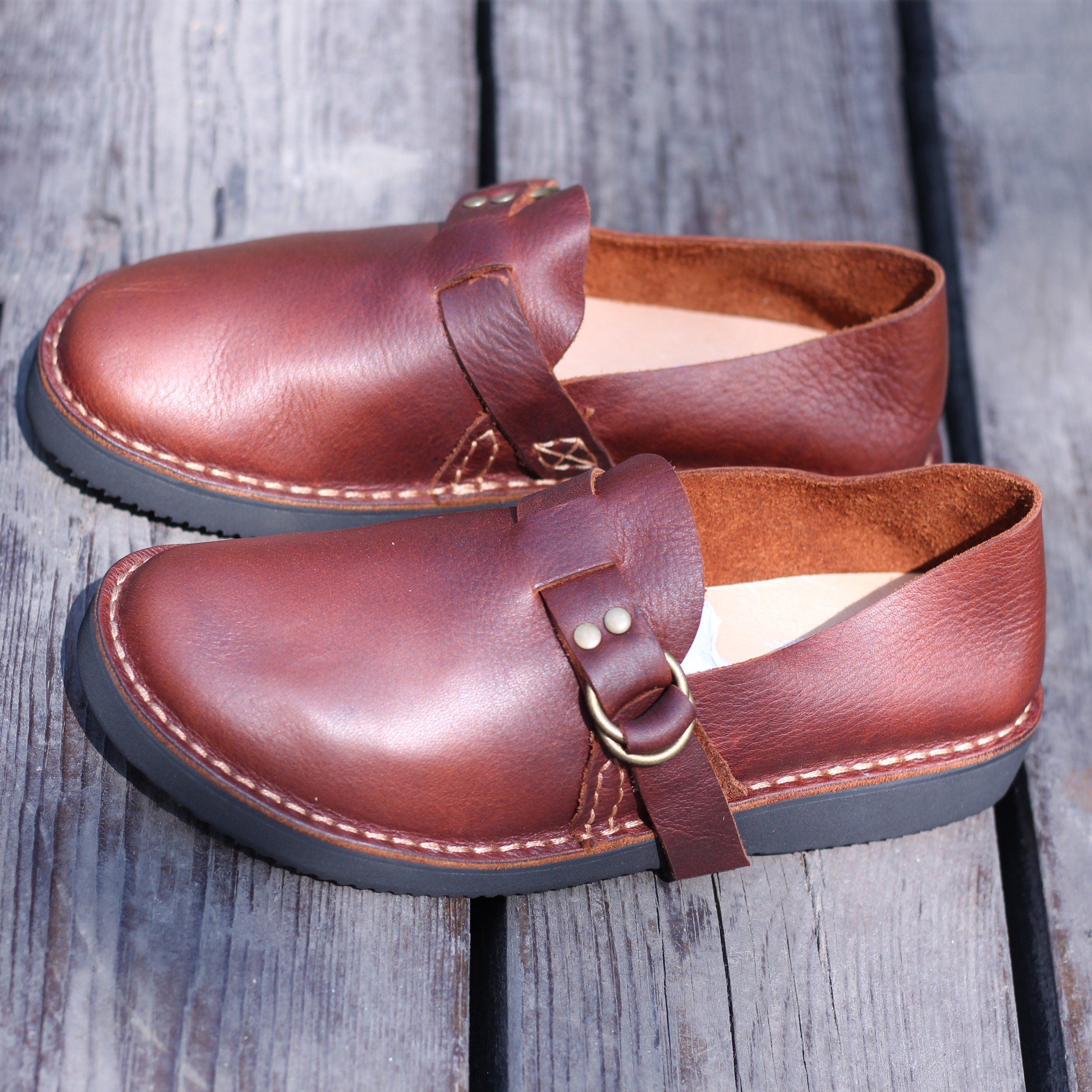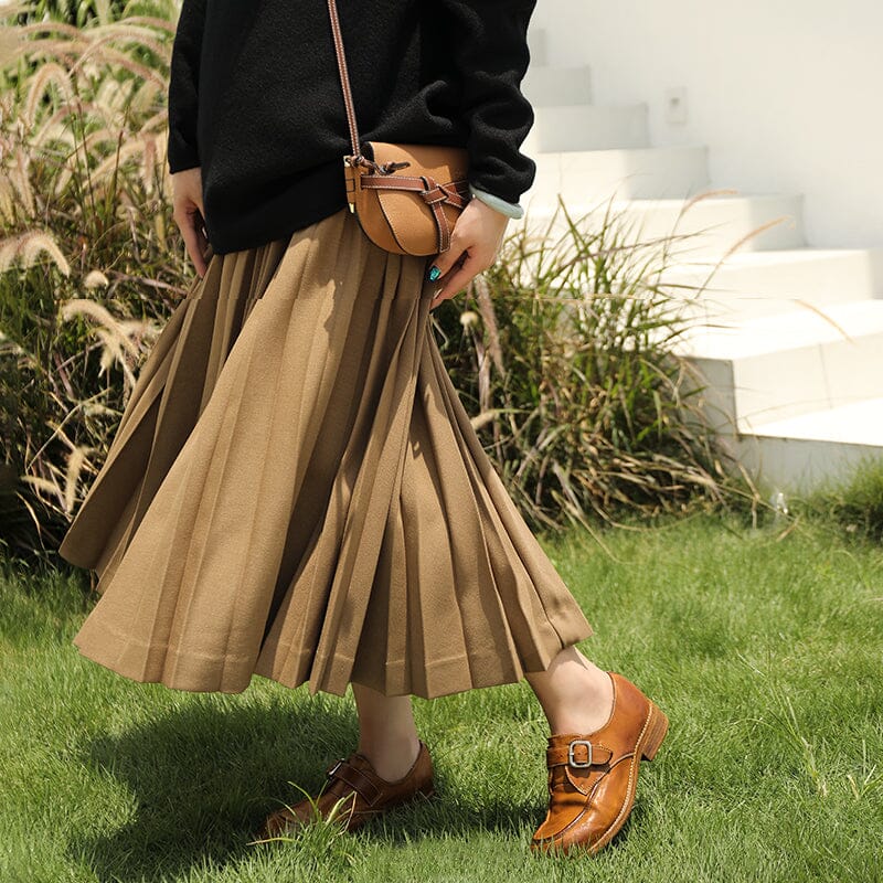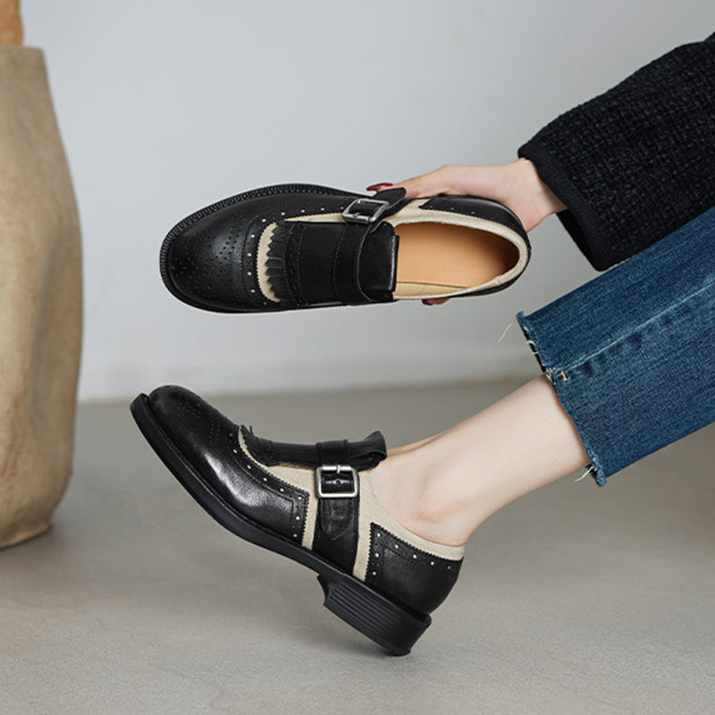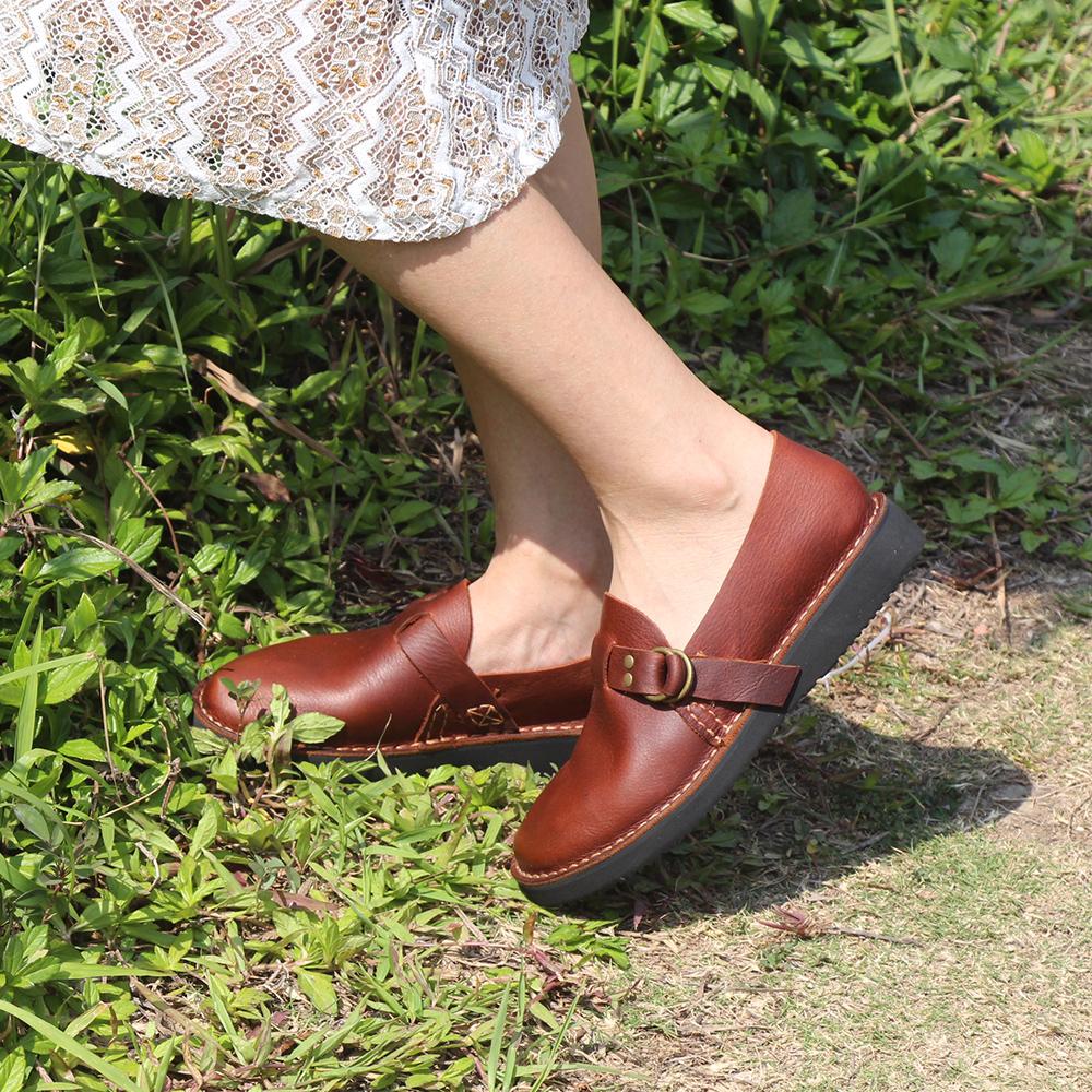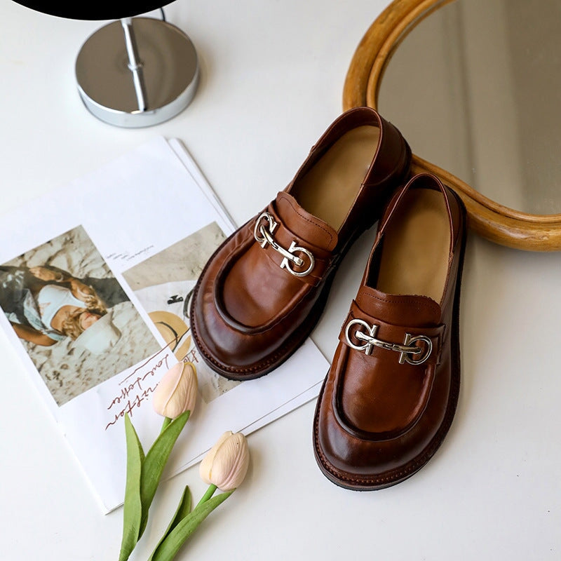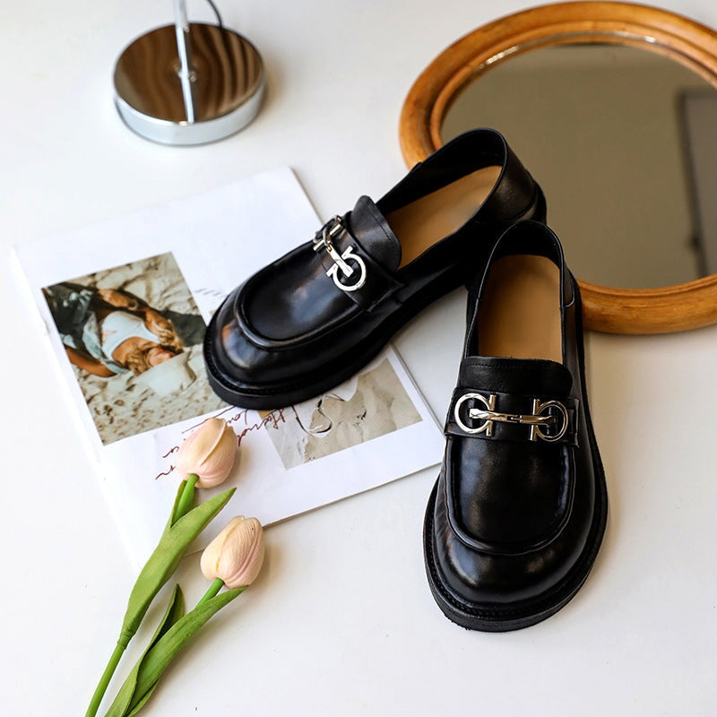Goodyear Horse Leather Shoes For Women Buckle Loafers Leather Sole in Black/Brown/Coffee