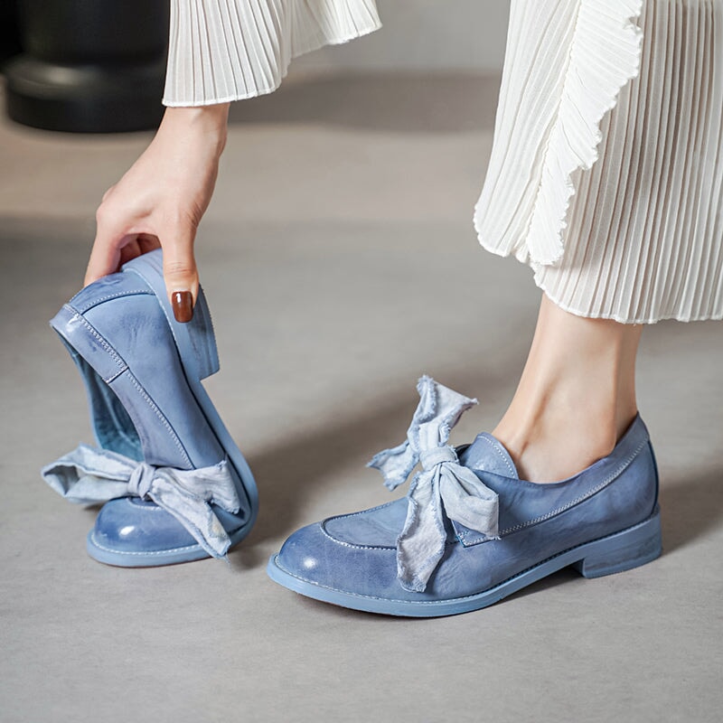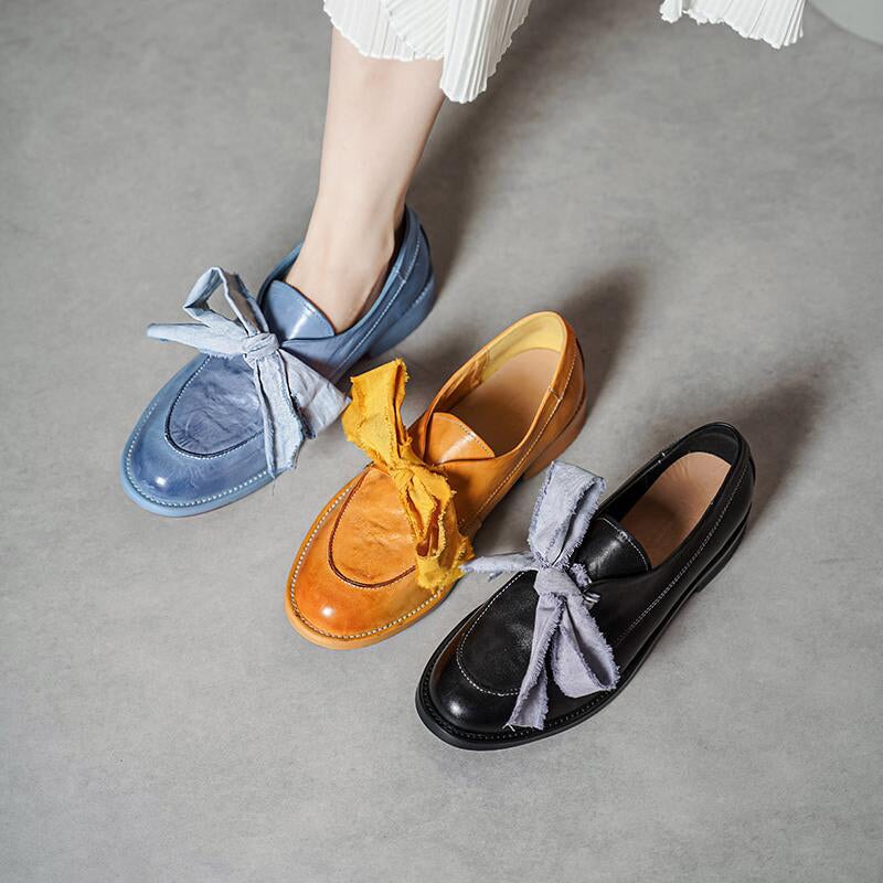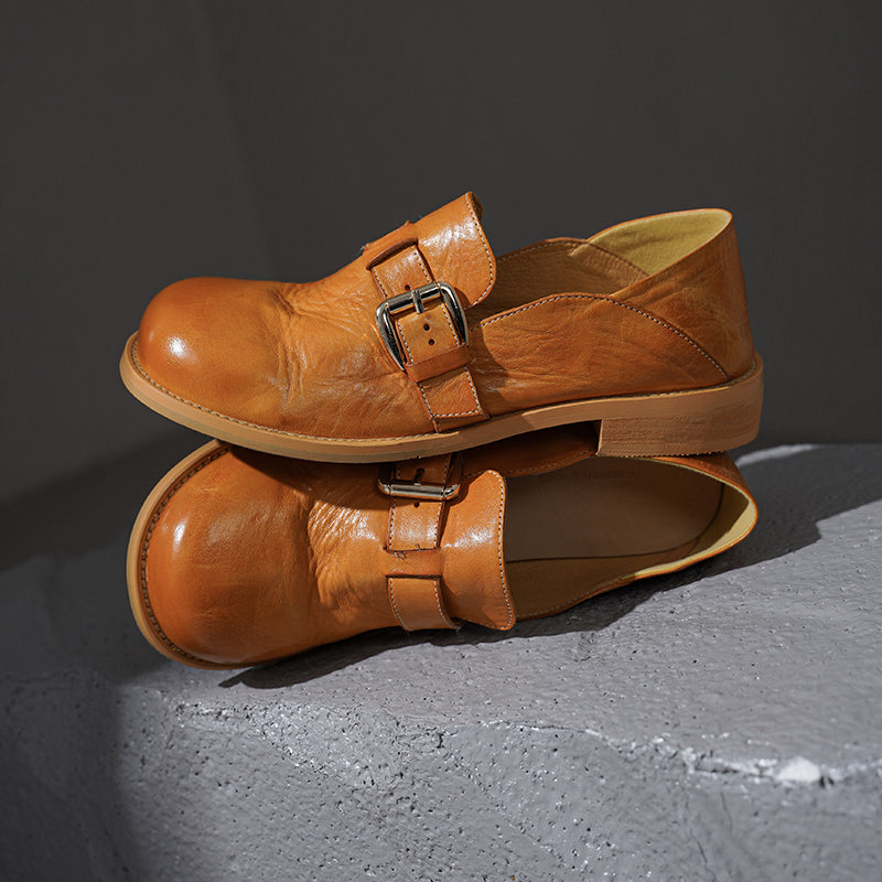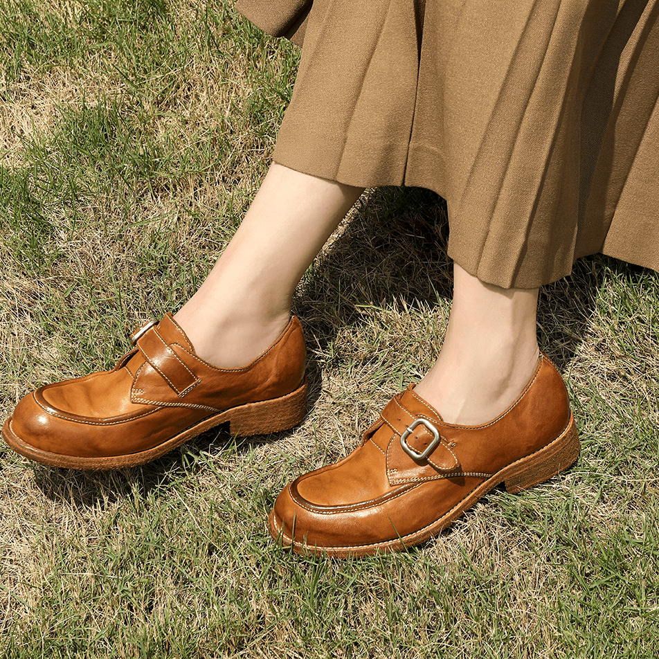 Vintage Leather Lace-Up Loafers Round Toe Flat Oxford Shoes in Light Brown/Deep Brown/Caramel/Apricot