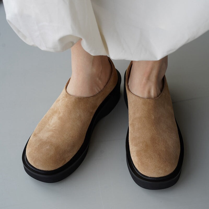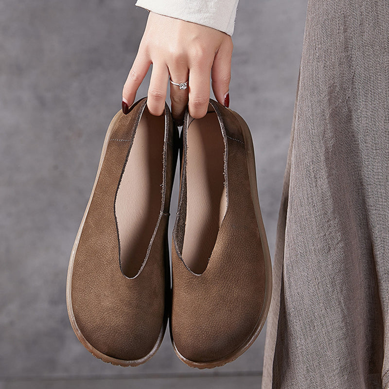 Soft Cow Leather Slip-On Loafers Comfort Flat Casual Barefoot Shoes in Khaki/Grey/Yellow Brown