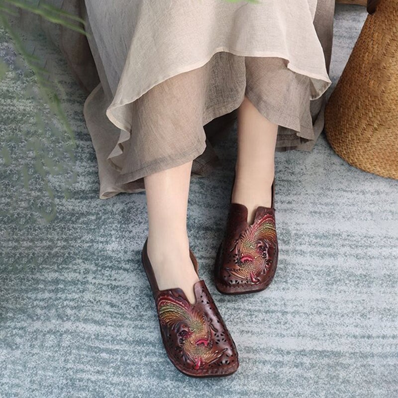 Designer Shoes Genuine Leather Sweet Flowers Slip-on For Women Handmade Flats Brown/khaki/Black/Red