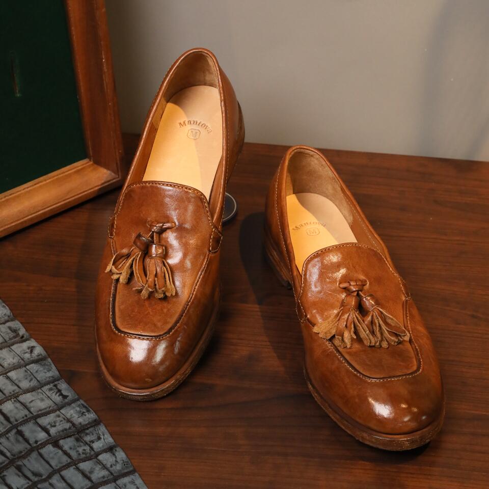 Mantova Series-Classic Loafer Shoes For Women Goodyear Horse Leather with Tassels in Brown