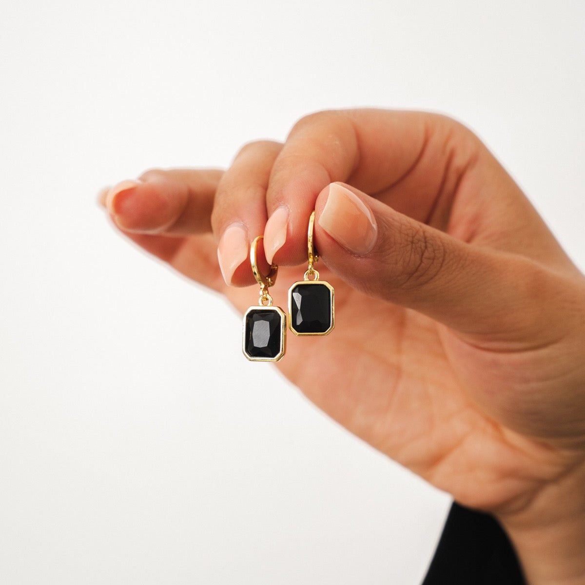 Square Latin Onyx Dangle Earrings - Gold