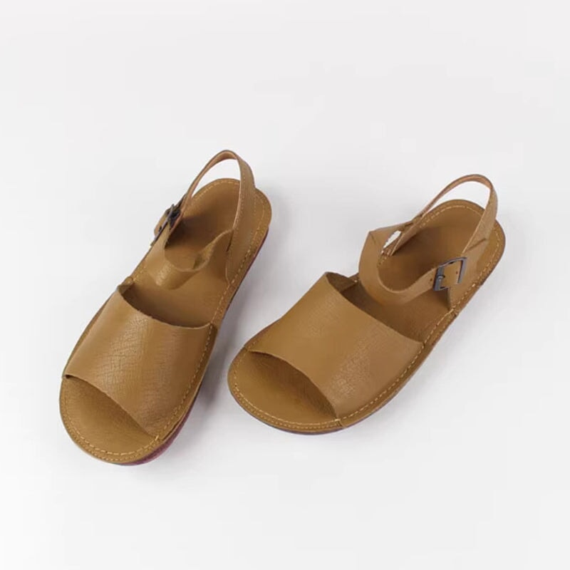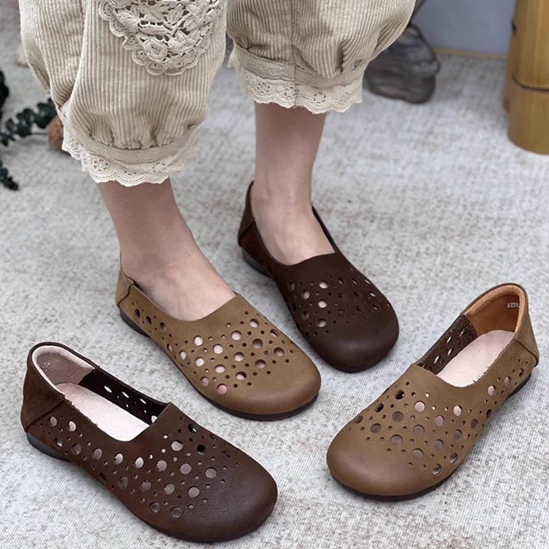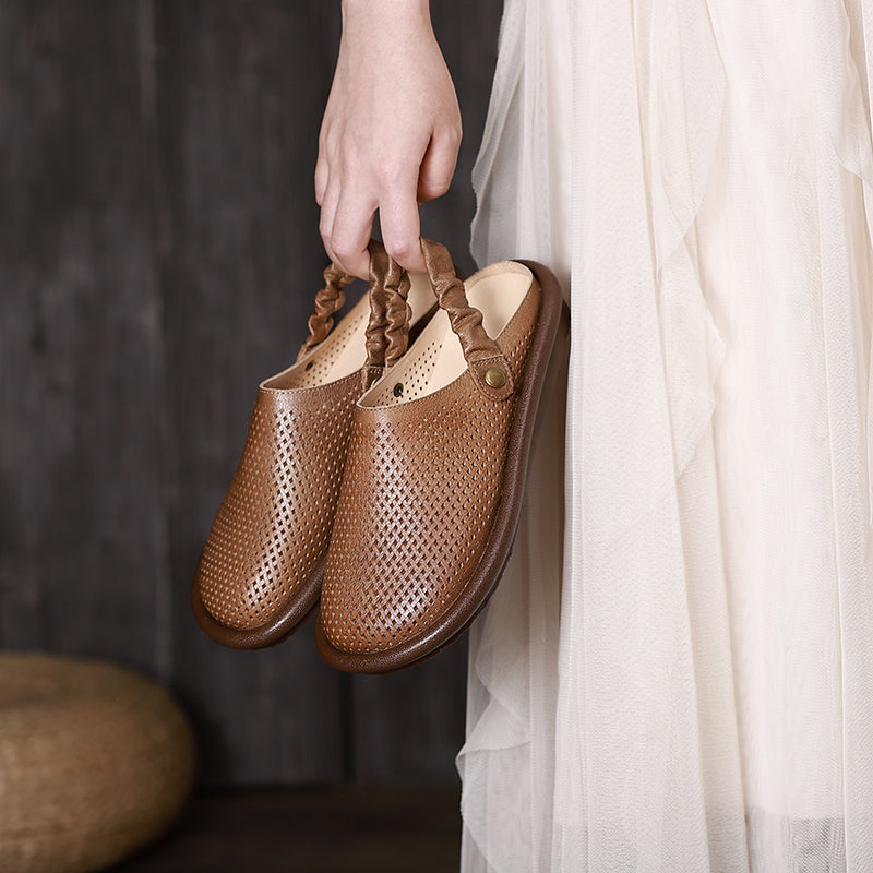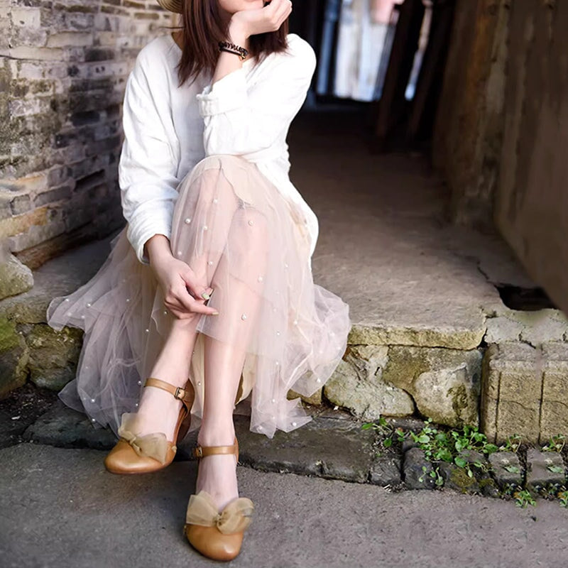 Handmade Soft Leather Loafers Flats For Women Summer Sandals with Bow in Beige/Grey/Brown
