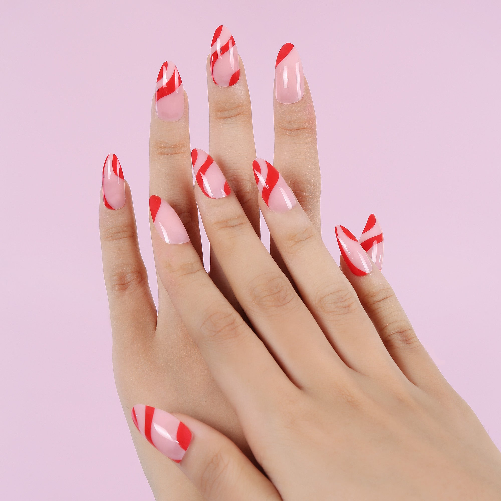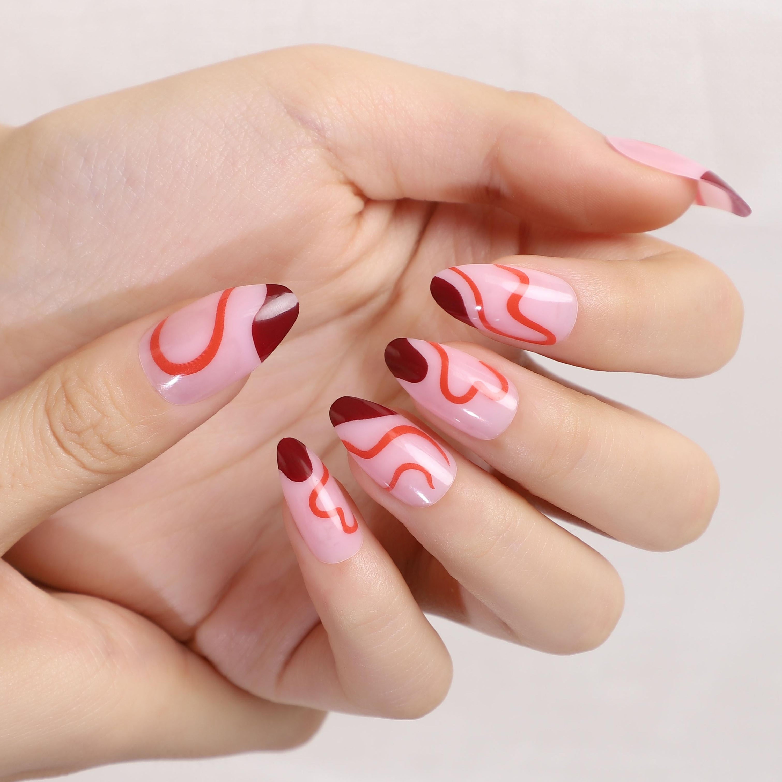 Handmade Cherry Red Blush Ombre Pink Cat Eye Press On Nails