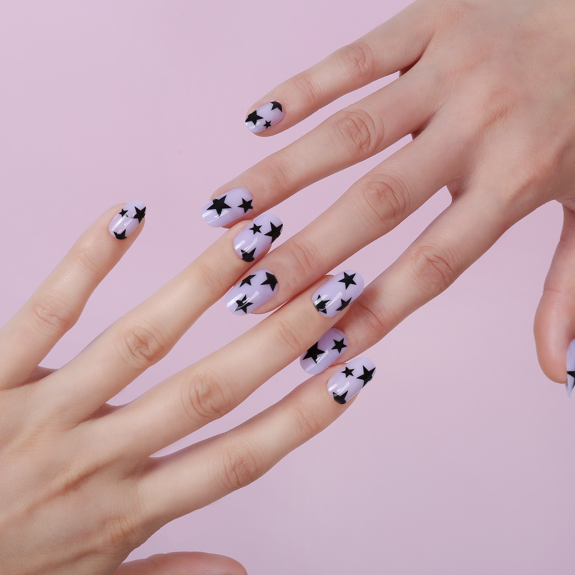 Black Star French Style 24pcs/Set Press On Nails SGCY-183