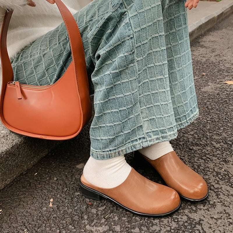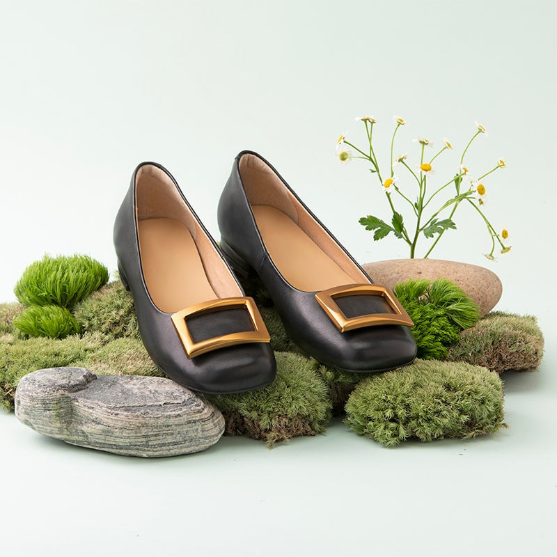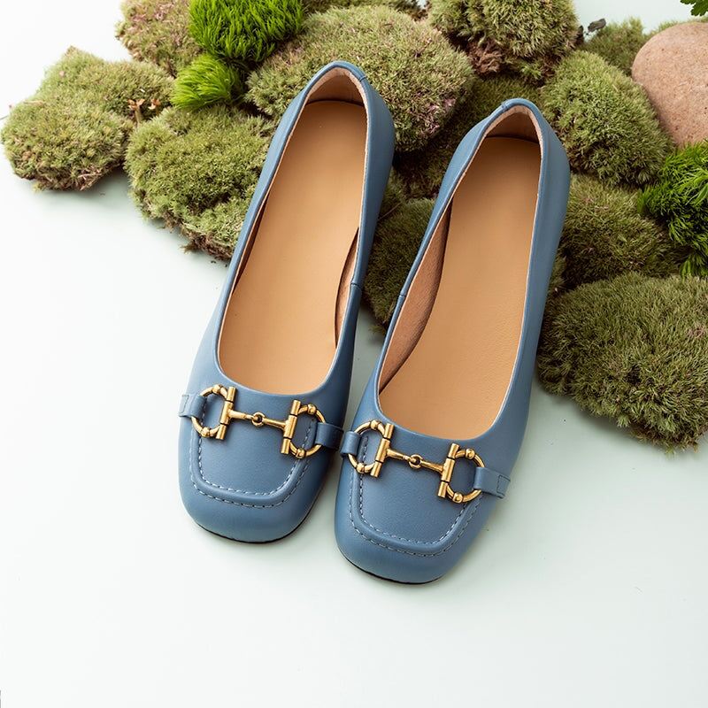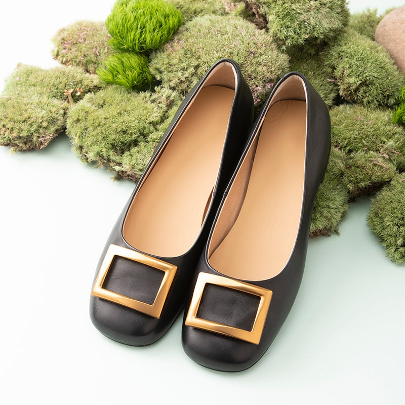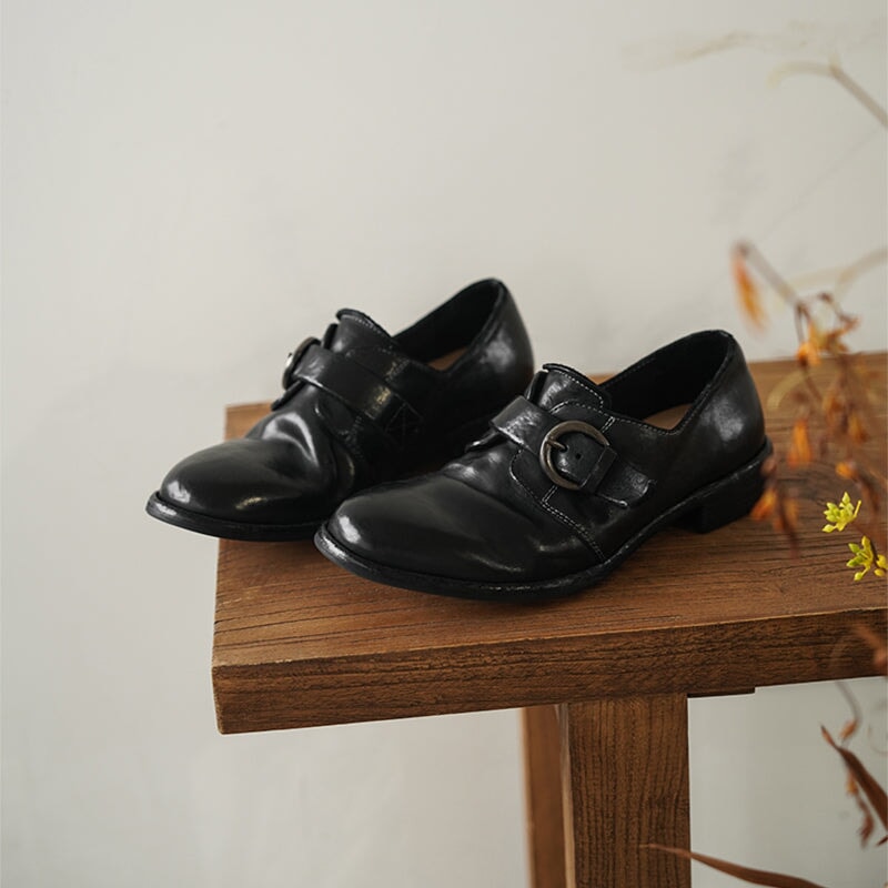 Goodyear Horse Leather Shoes For Women Buckle Loafers Leather Sole in Black/Brown/Coffee