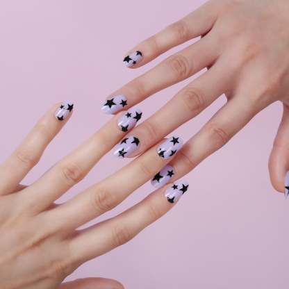 • Nail Package content:24 nails in 9 different sizes from size 0-9, one sheet ofadhesive, a nail file, and a Wood Stick.No matter what your nail size is, you can choose the most suitable nail for yourself, stick nails are easy to trim and file them to in any length and shape you like./Please know that you are also able to shape all the nails so that they fit perfectly