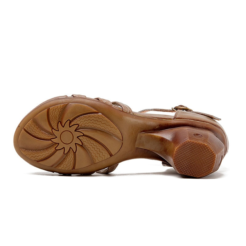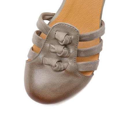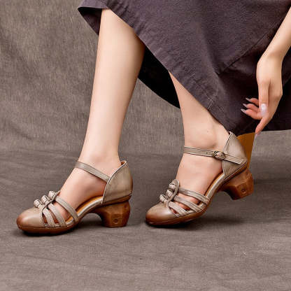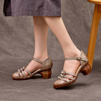 Block Heel Sandals For Women Ankle Strap Leather Pumps in Gray