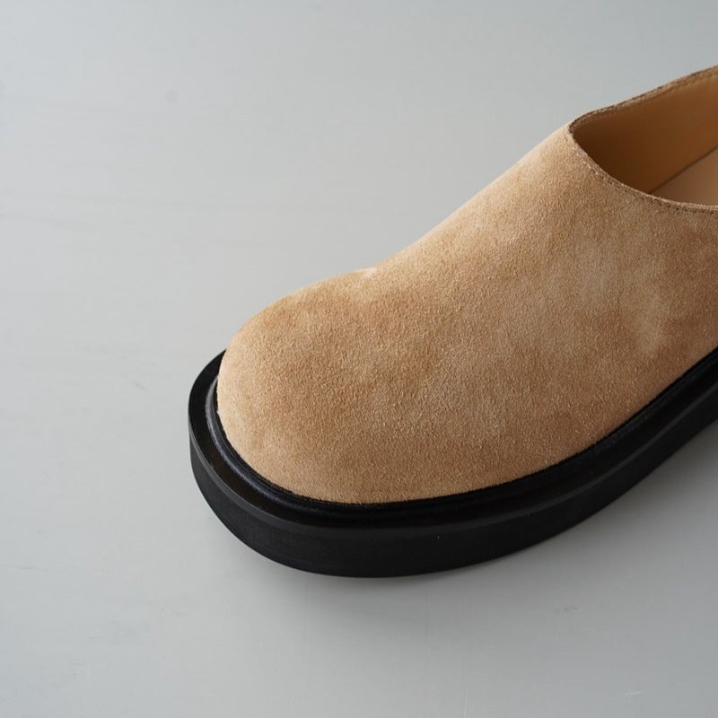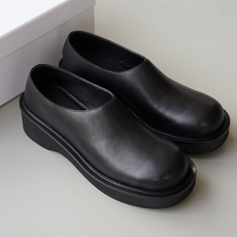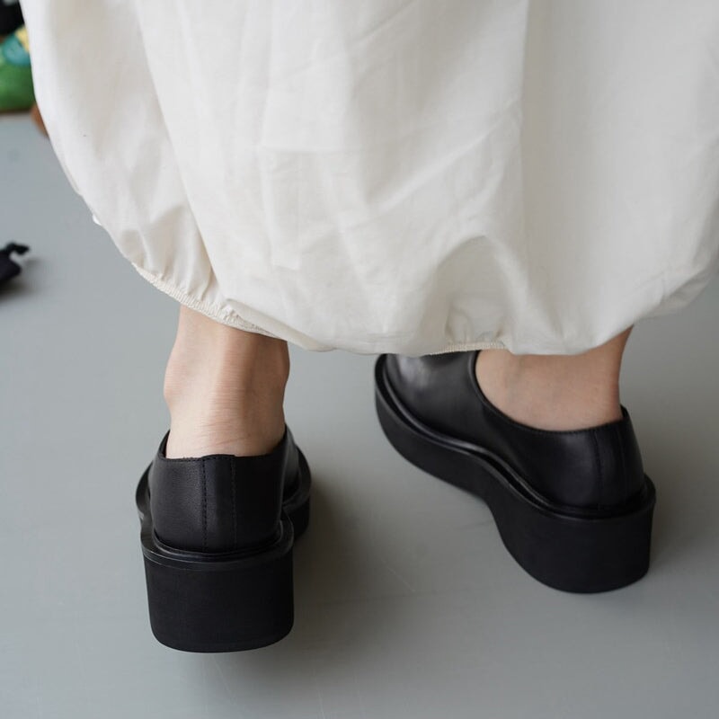Comfy Genuine Leather Women Loafers Slip On Walking Platform in Black/Camel