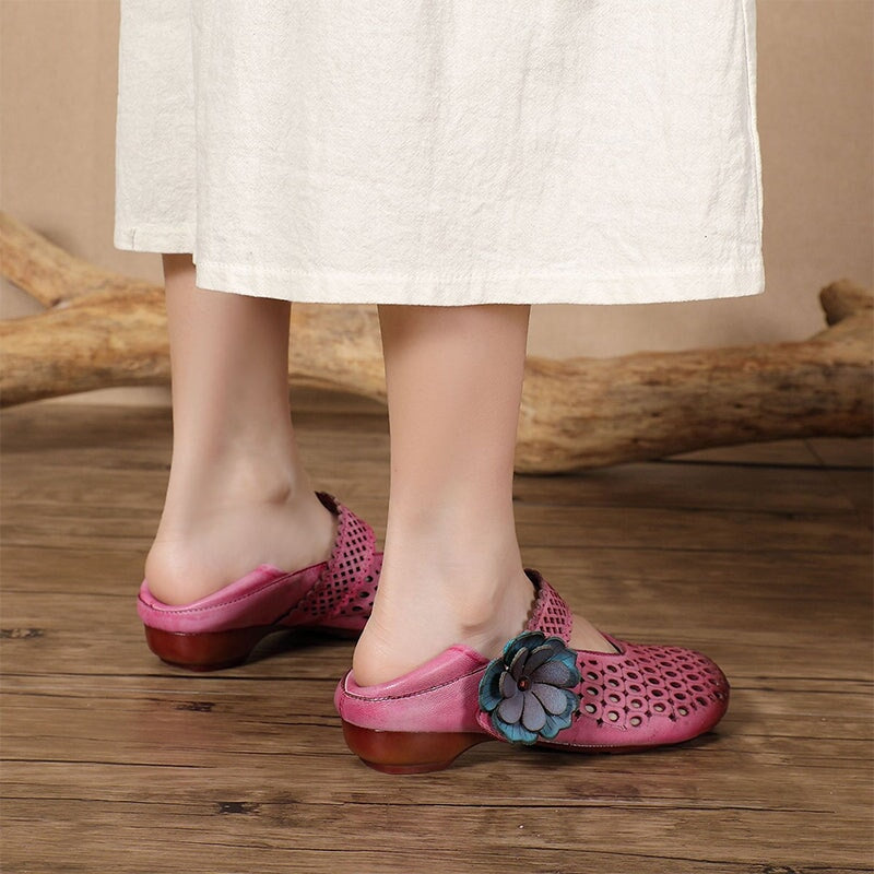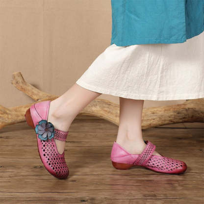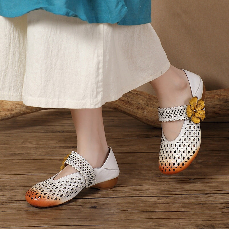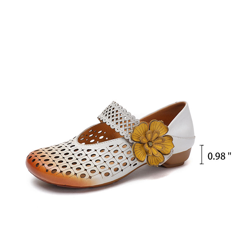 Comfy Genuine Leather Flats Women Mary Jane Slip On Walking Flats in Beige/Purple