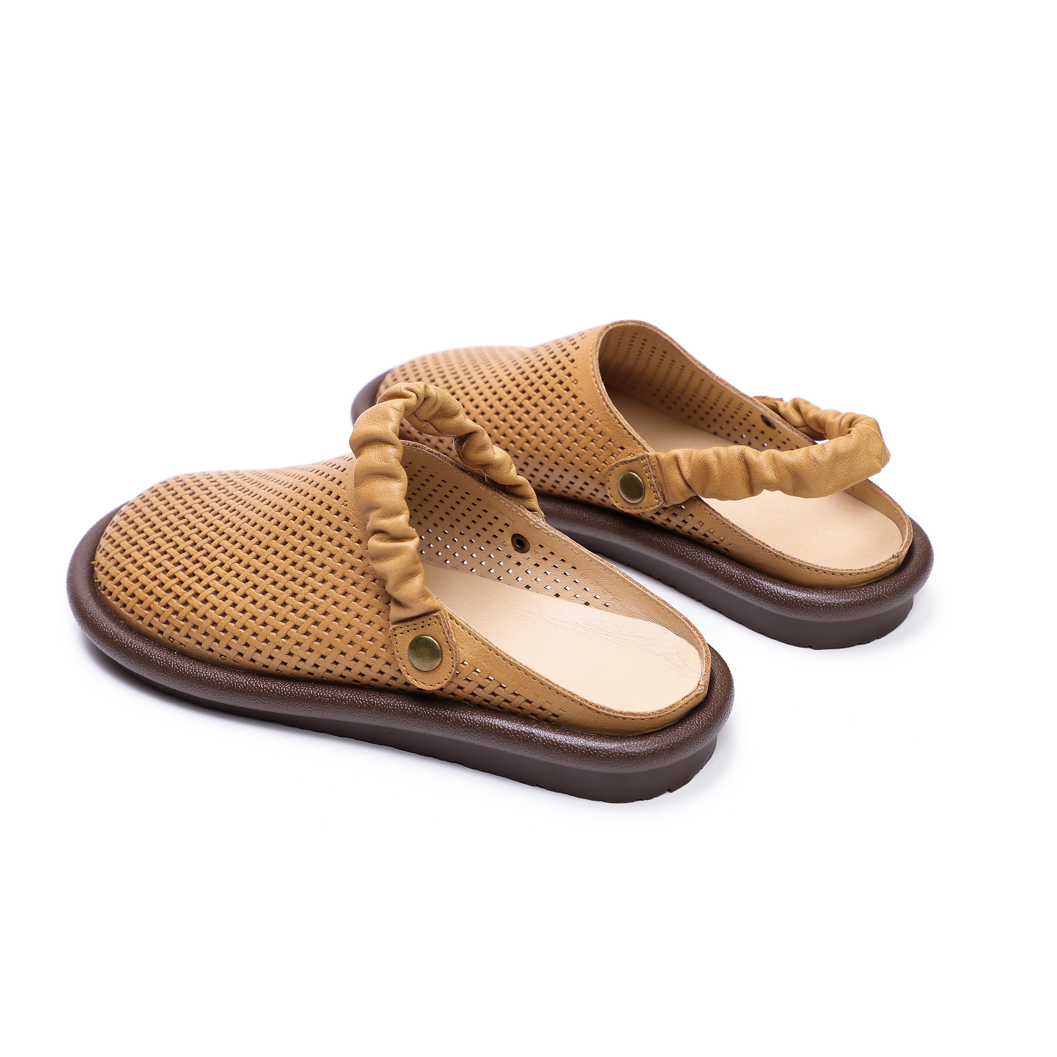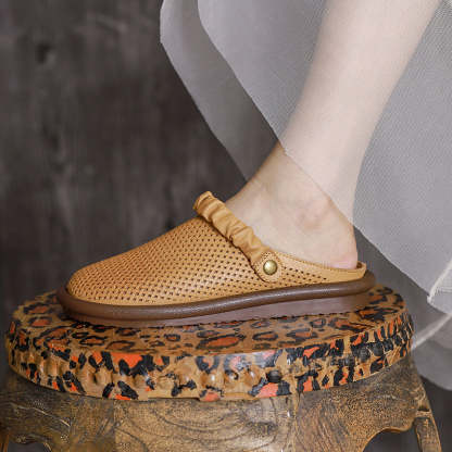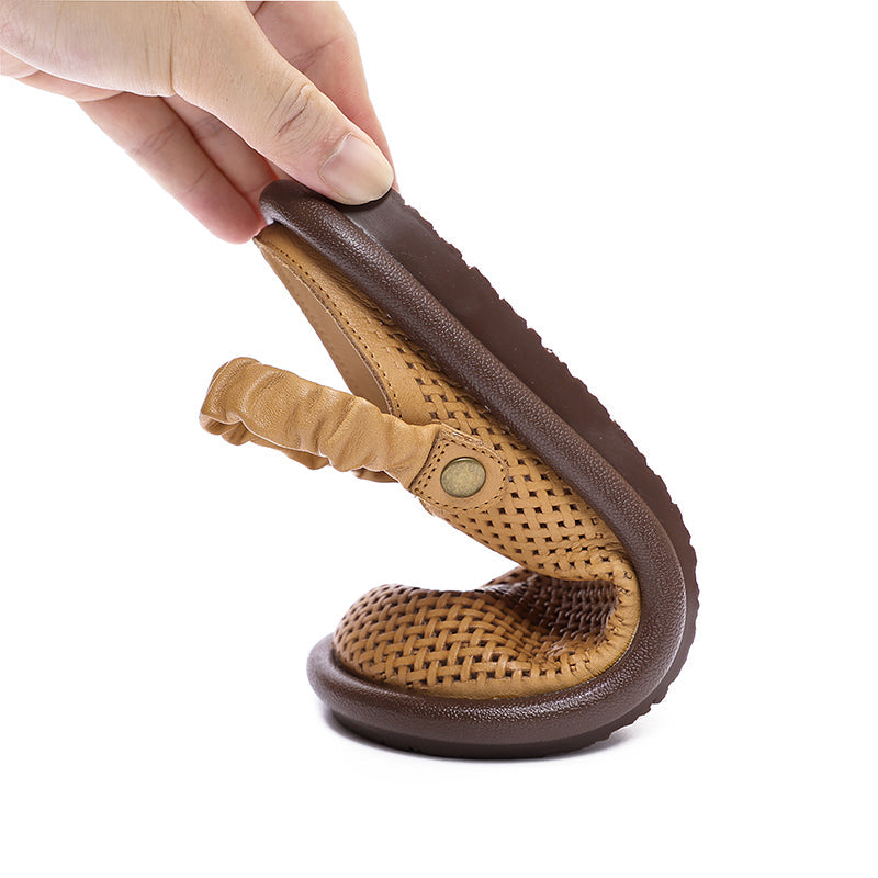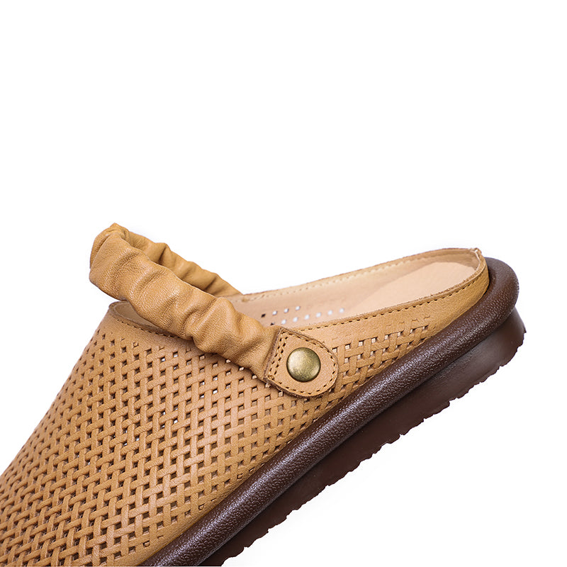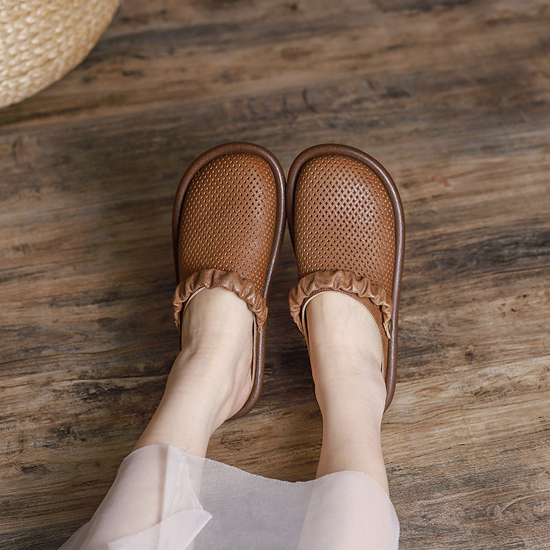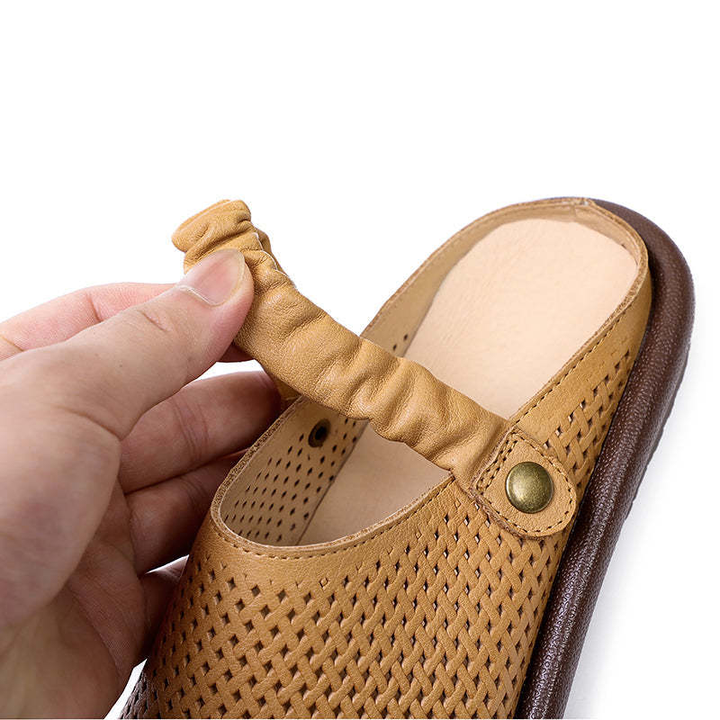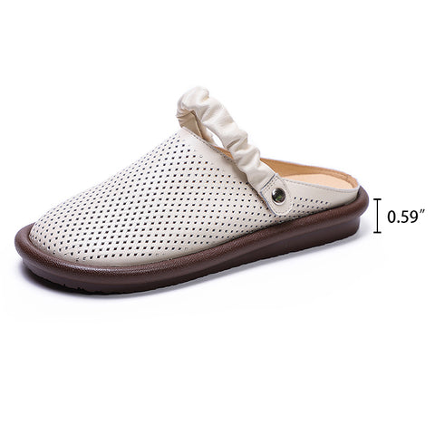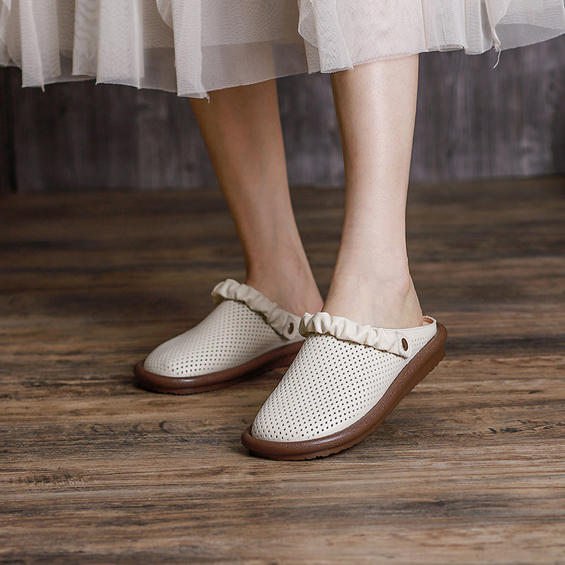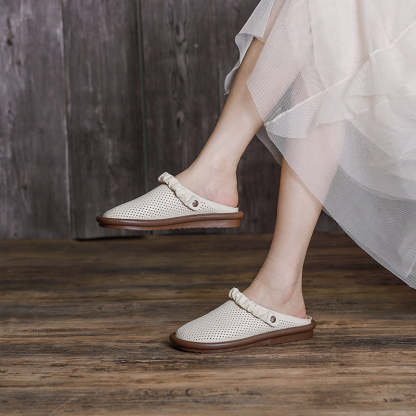 Comfy Leather Mary Jane Sandals Cut Out Flats Off white/Brown/Coffee