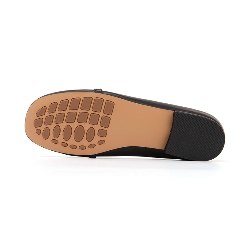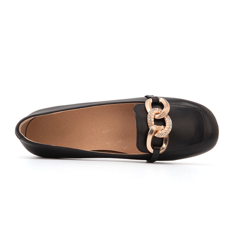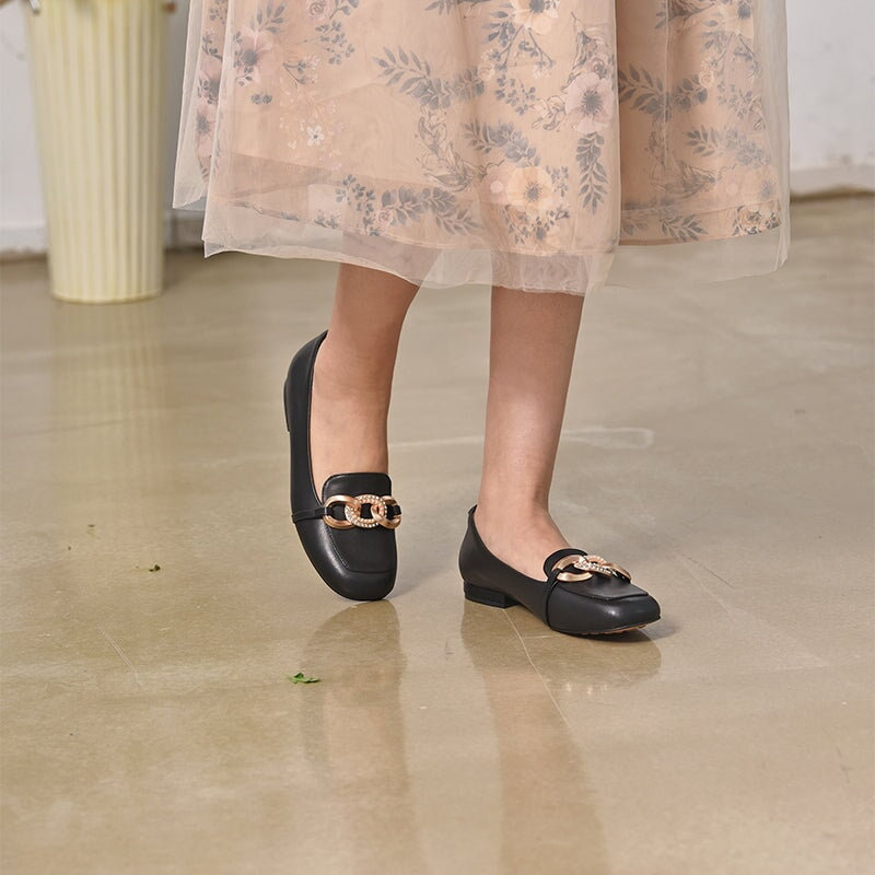 Metal Chain Detailed Leather Loafers for Women Black/Nude