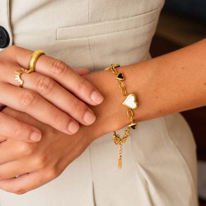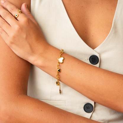 Monochrome Hearts Chain Bracelet - Gold
