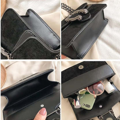 Solid Faux Suede Shoulder Bag with Classic Metal Decoration