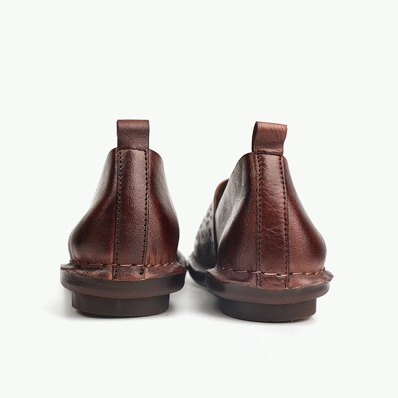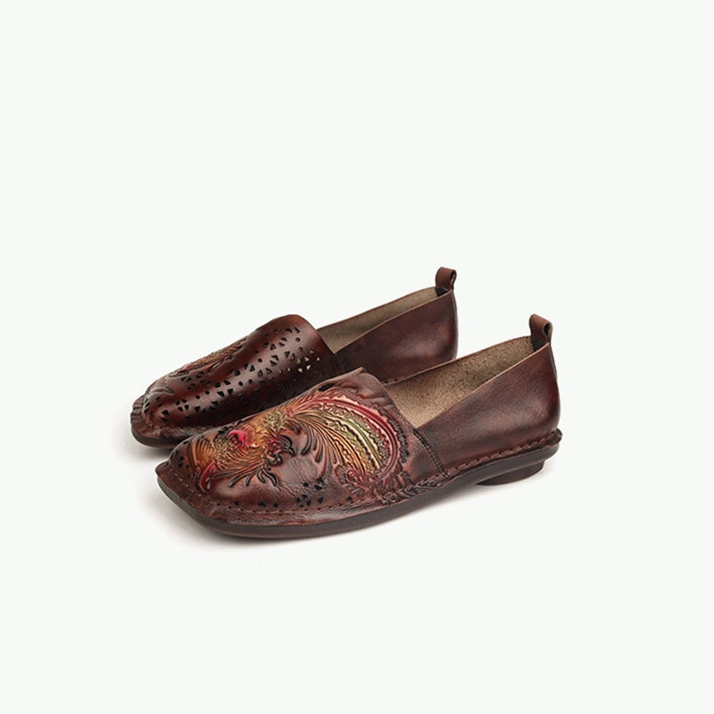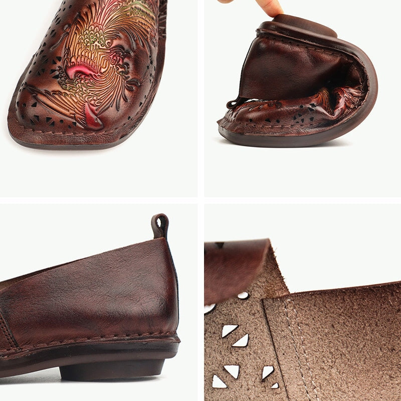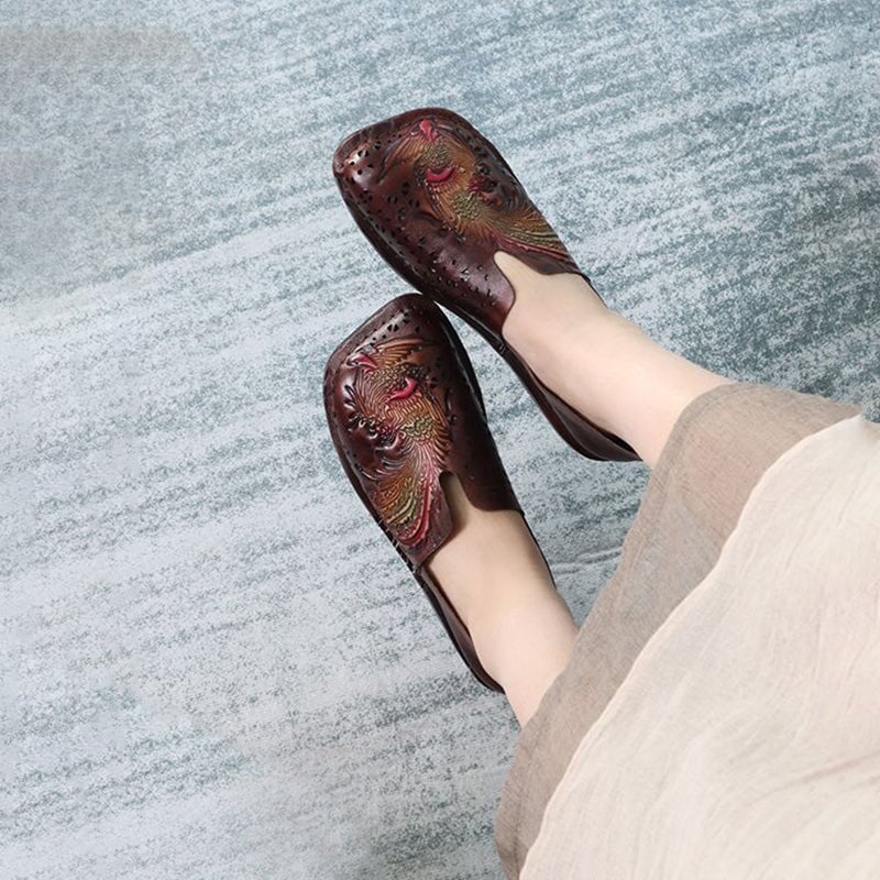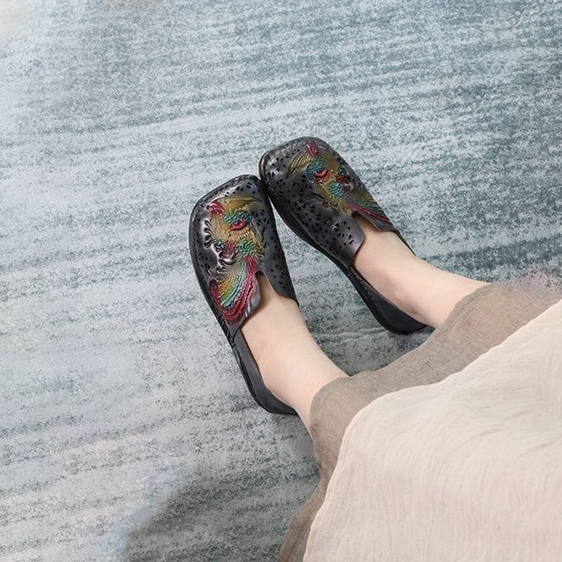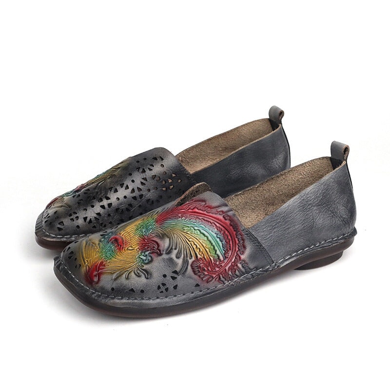 Flats Shoes Women Hollow-Out Phoenix Pattern Loafers in Gray/Coffee