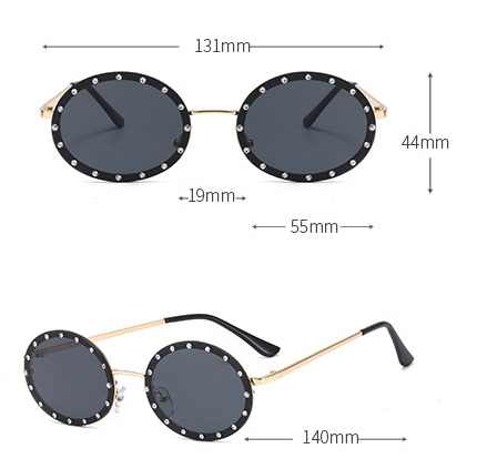 Rhinestone Decorated Alloy Frame UV400 Polycarbonate Lens Oval Sunglasses