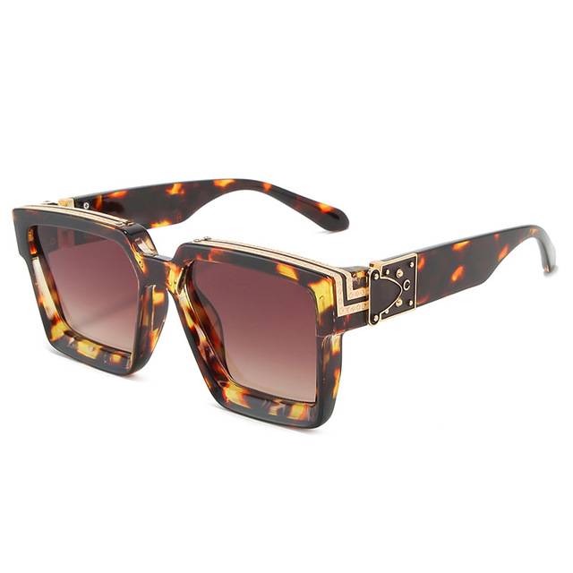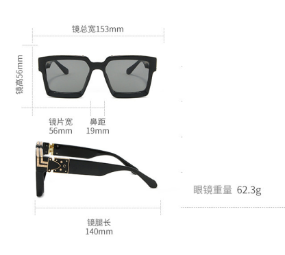 Plastic Framed Retro Square Sunglasses with UV400 Plastic Lenses and Gold Accent Decoration