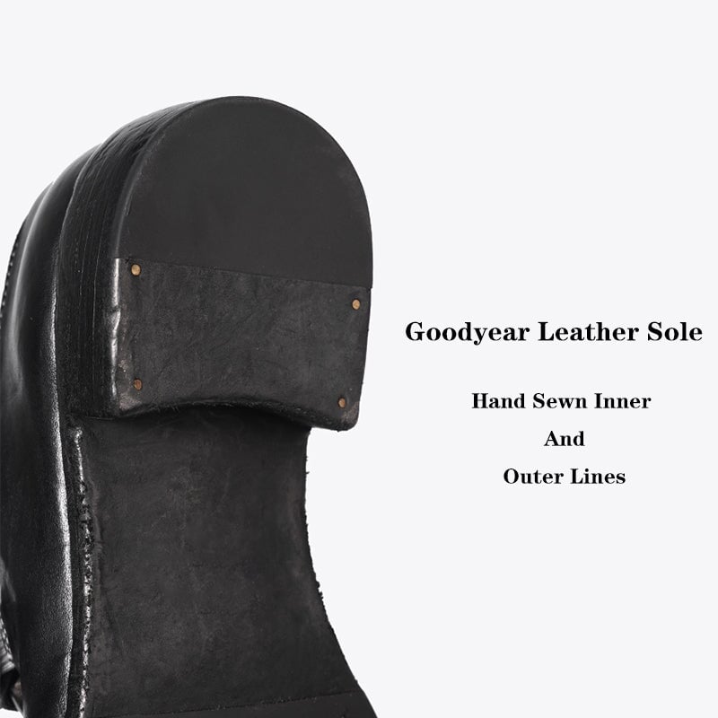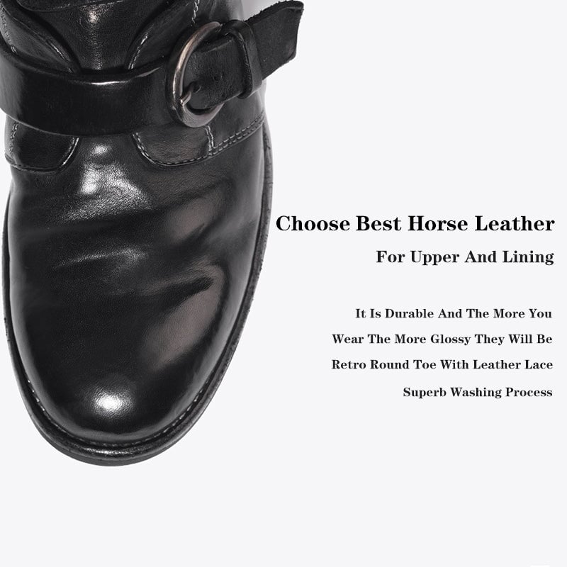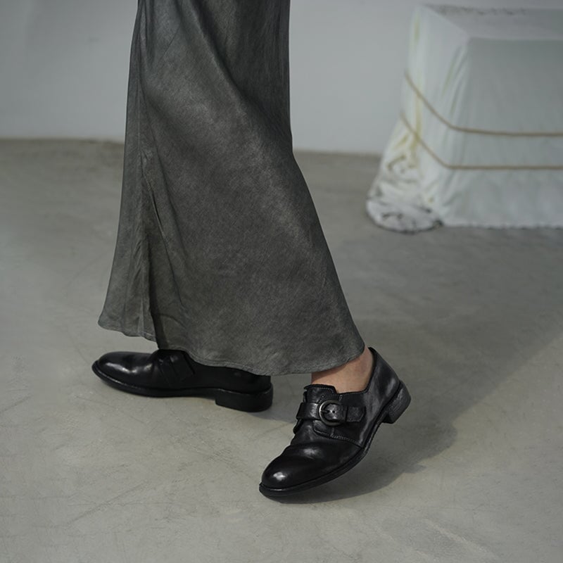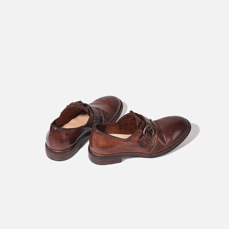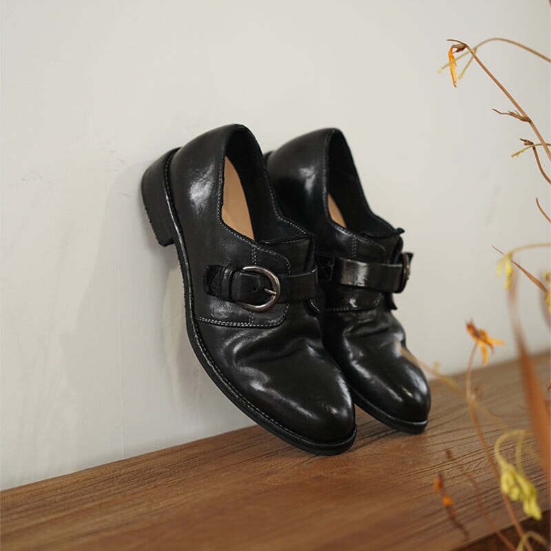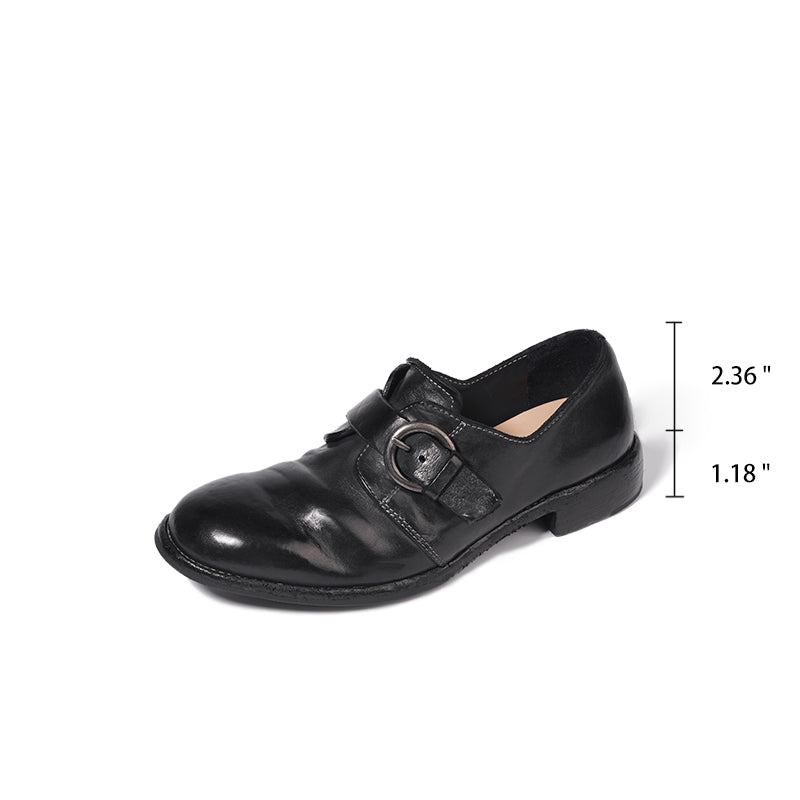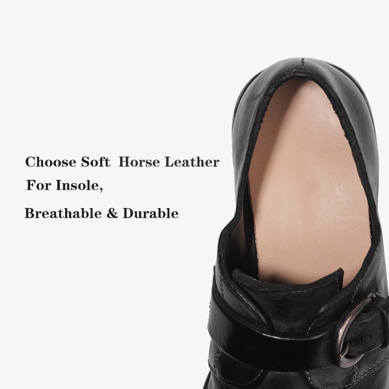 Goodyear Horse Leather Monk Shoes For Women Buckle Loafers Leather Sole in Black/Coffee