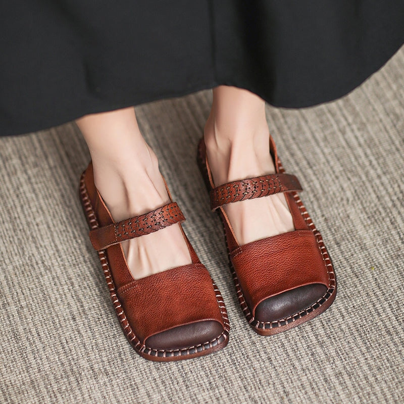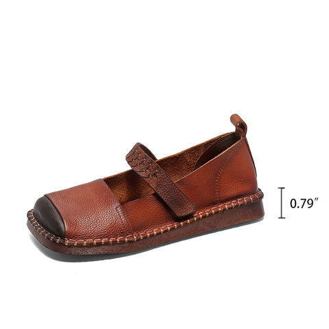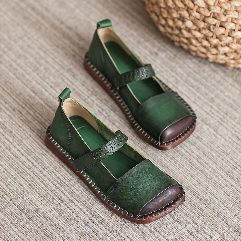 Handmade Genuine Leather loafer Slip On Breathable Mary Jane Shoes Green/Brown