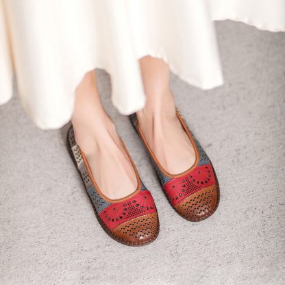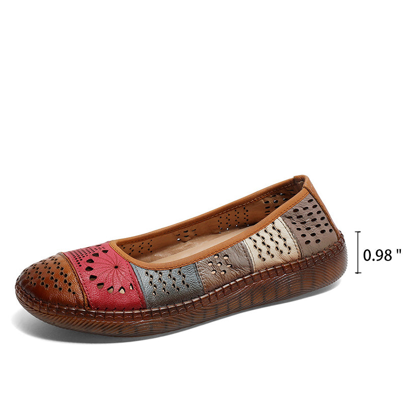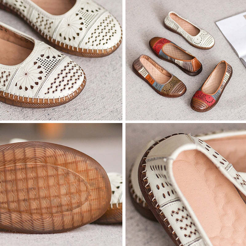 Handmade Hollow Out Leather Sandals Retro Loafers Beige/Red/Green