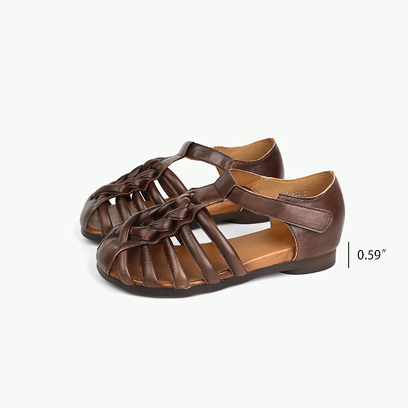 Handmade Leather Gladiator Sandals Retro Woven in Coffee/Black