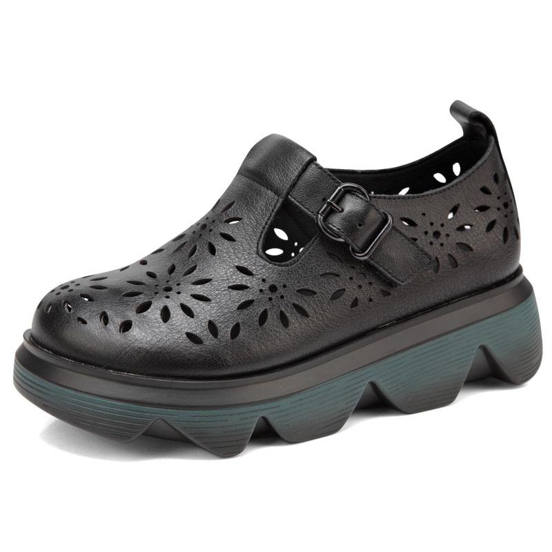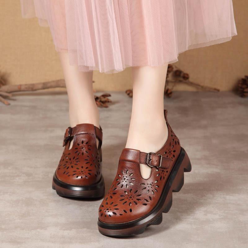 Handmade Leather Light Platform Sandals For Women Mori Girl Style Retro Mary Jane Shoes Grey/Coffee