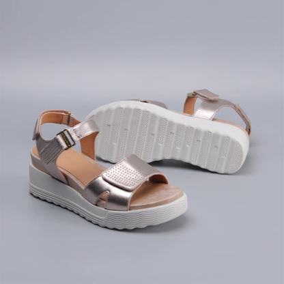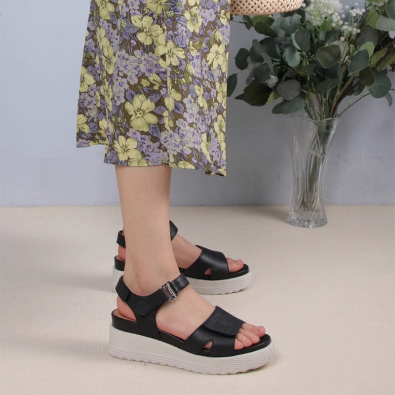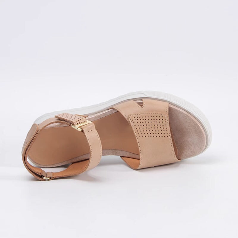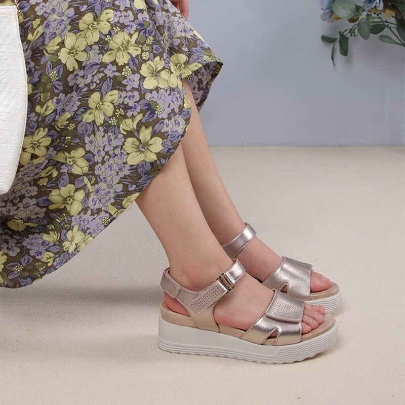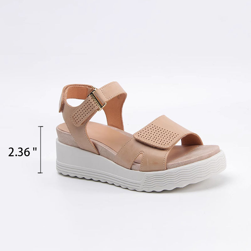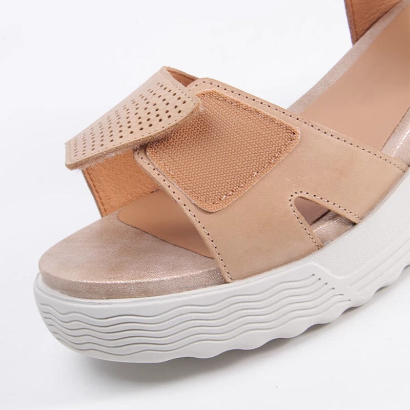 Handmade Leather Sandals in Golden/Black/Apricot- Womens Platform Slingback