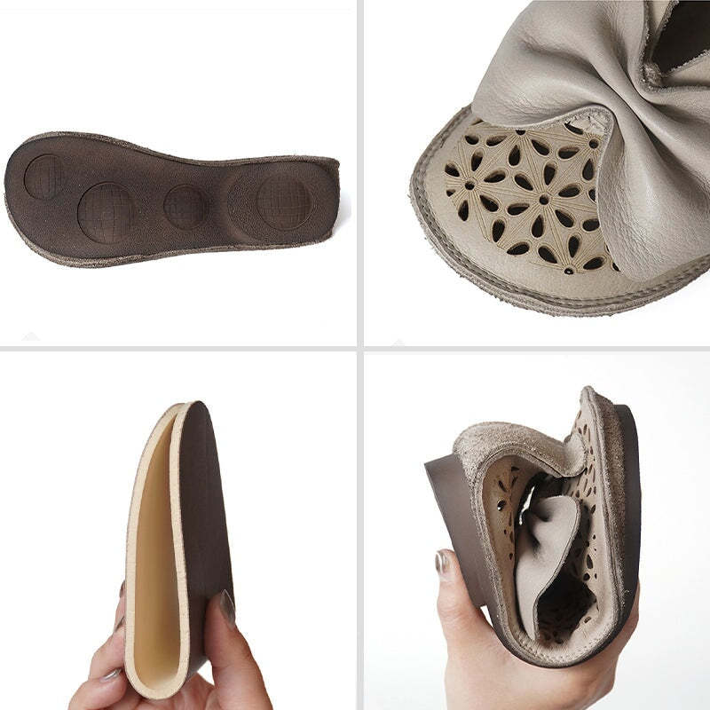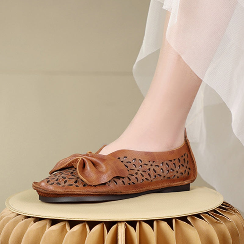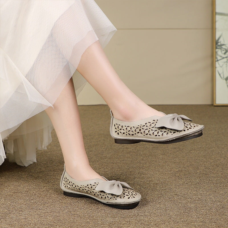 Handmade Soft Leather Loafers Flats For Women Summer Sandals with Bow in Beige/Grey/Brown