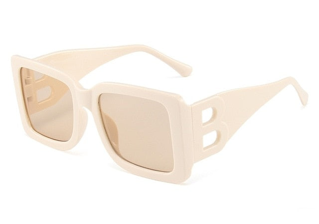 Plastic Frame Square Sunglasses with UV400 Polycarbonate Lens and "B" Letter on the side of Frame.