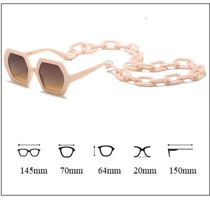 Plastic Frame Sunglasses with Chain Decoration and UV400 Lens