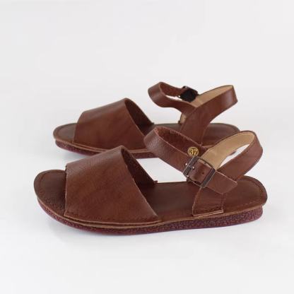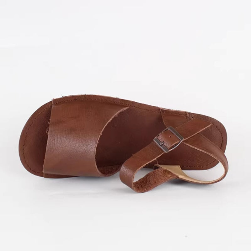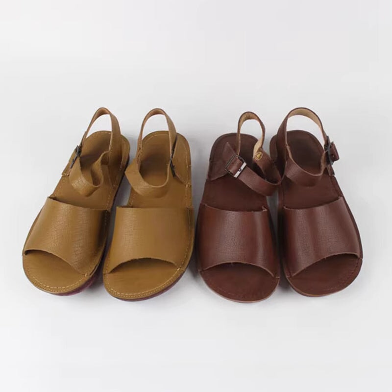 Slingback Leather Buckle Sandals Open Toe Retro Handmade Coffee/Khaki