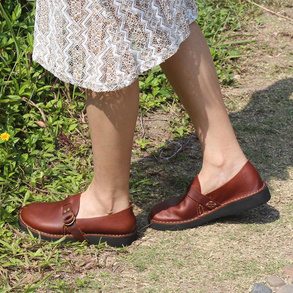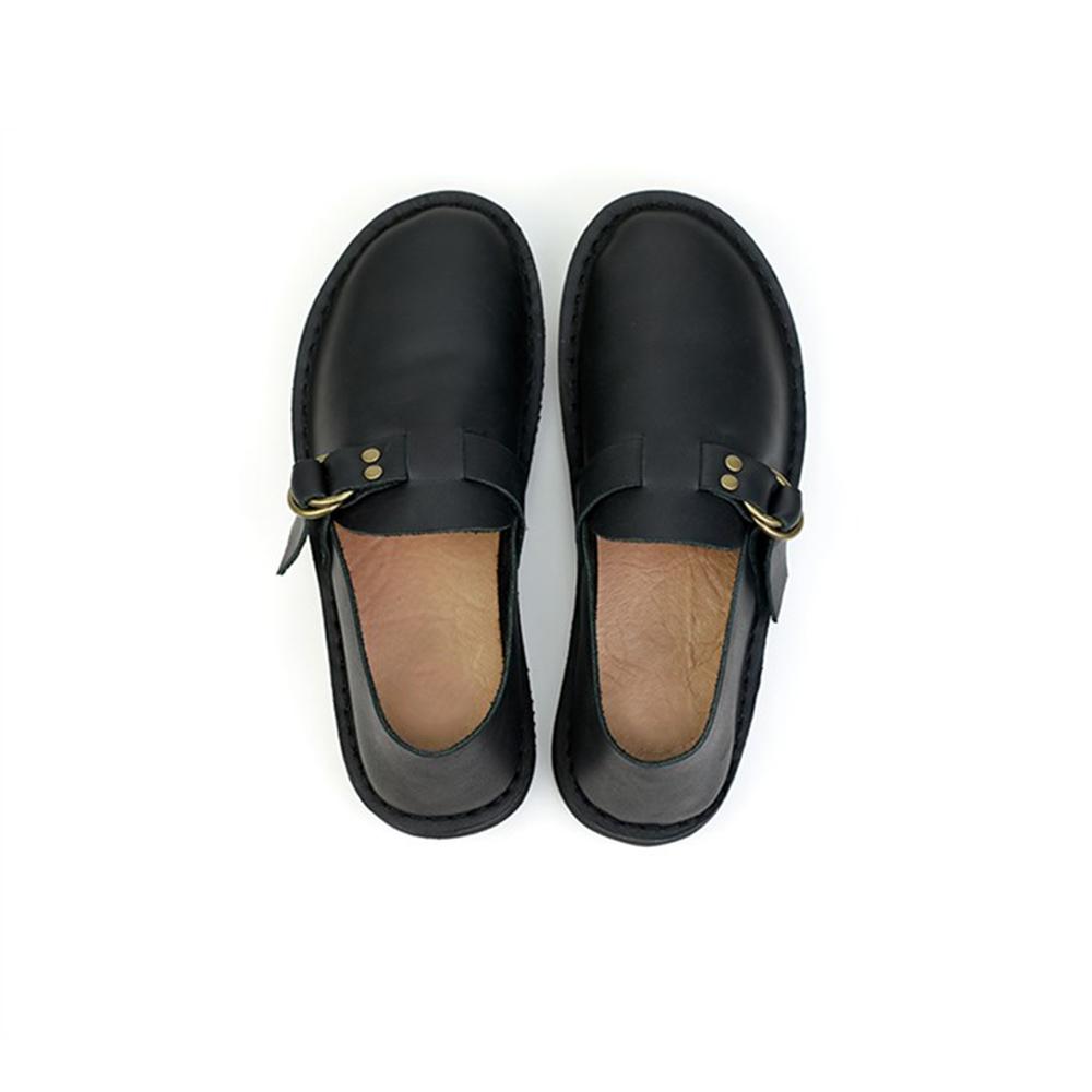 Middle English-Womens Handmade Full Grain Leather Flats Loafers- Black/Brown