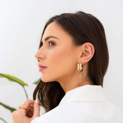 Cuban Conveyor Dangle Earrings - Gold