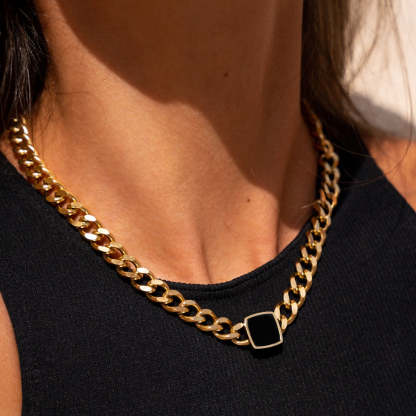 Onyx Square Pendant Cuban Chain - Gold
