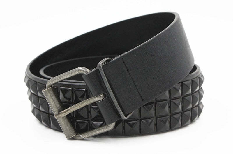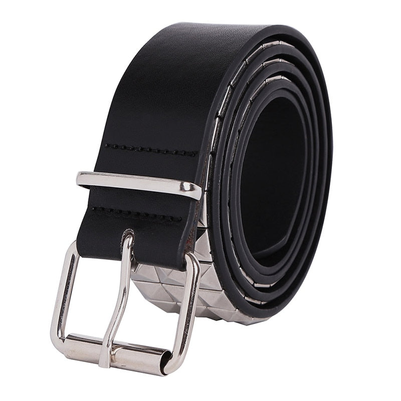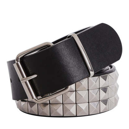 Solid Rivet Decorated PU Leather Belt with Classic Metal Buckle