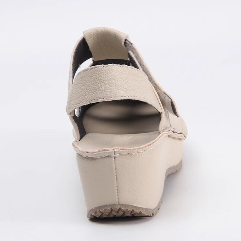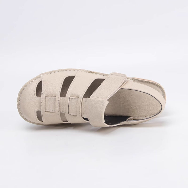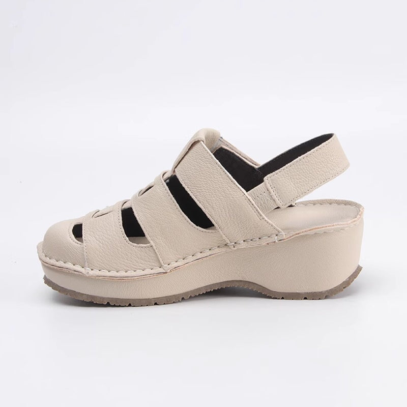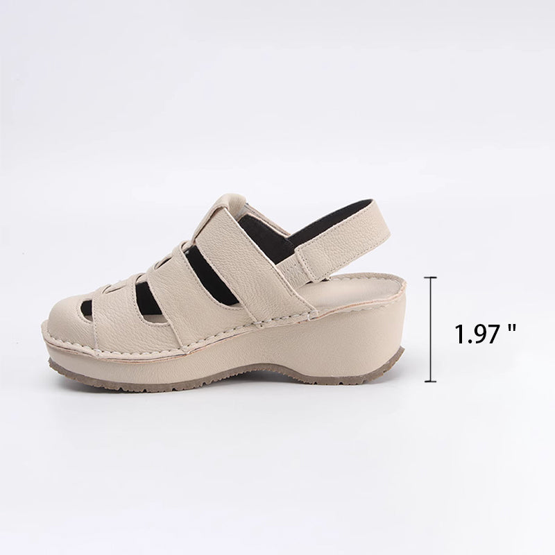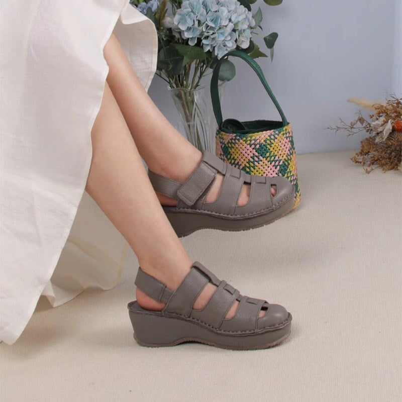 Retro Soft All Leather Woven Platform Gladiator Sandals In Beige/Gray/Black