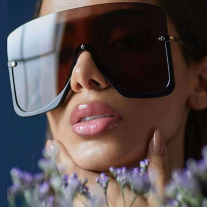 Alloy Frame UV400 Polycarbonate Lens Shield Sunglasses with Rivet Decoration