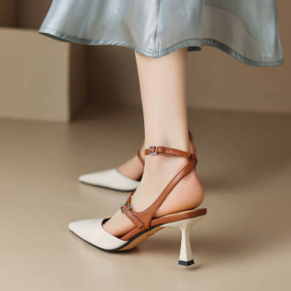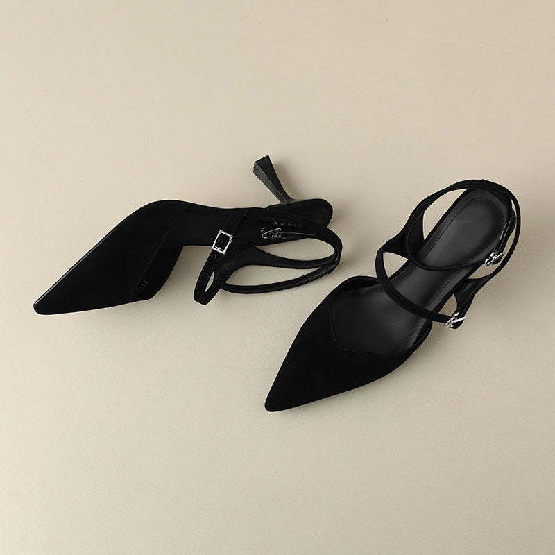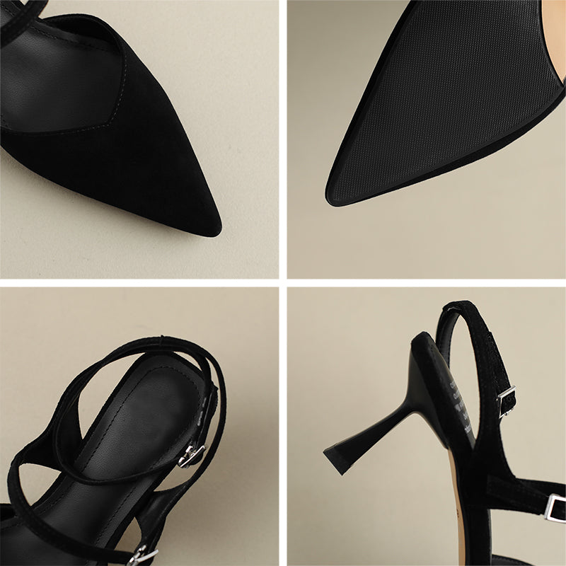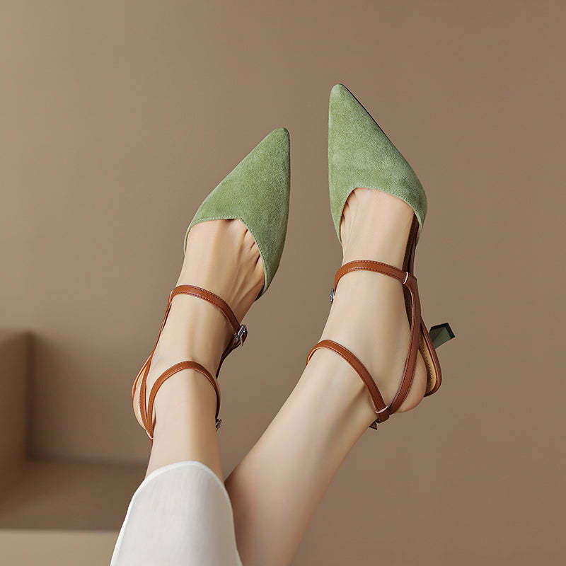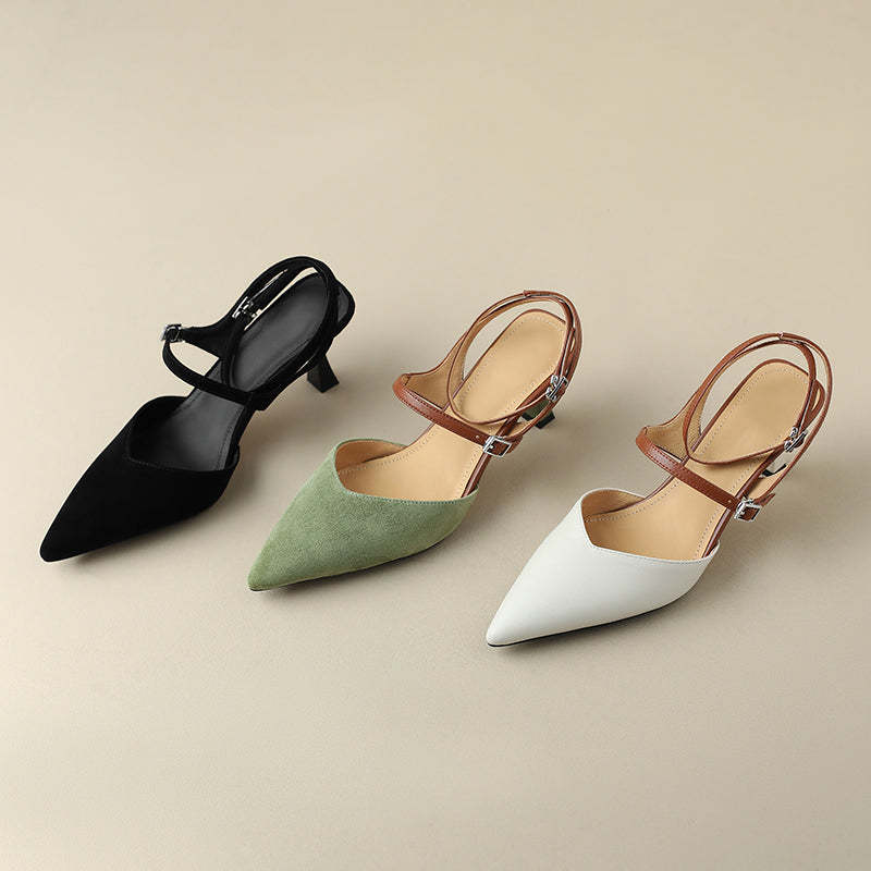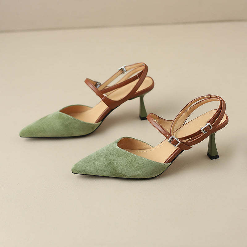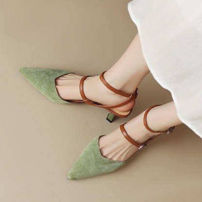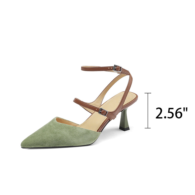 Summer Suede Pointed Toe Sandals 65mm Kitten Heel Slingback Pumps in Green/Black/Beige