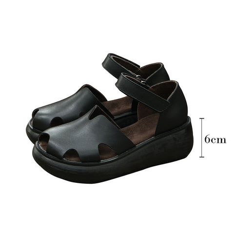 Summer Wedge Sandals Platform Cut Out Open Peep Toe Sandals Black/White