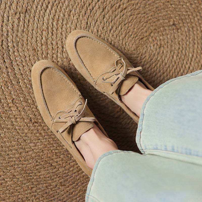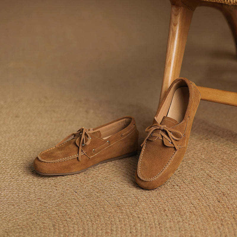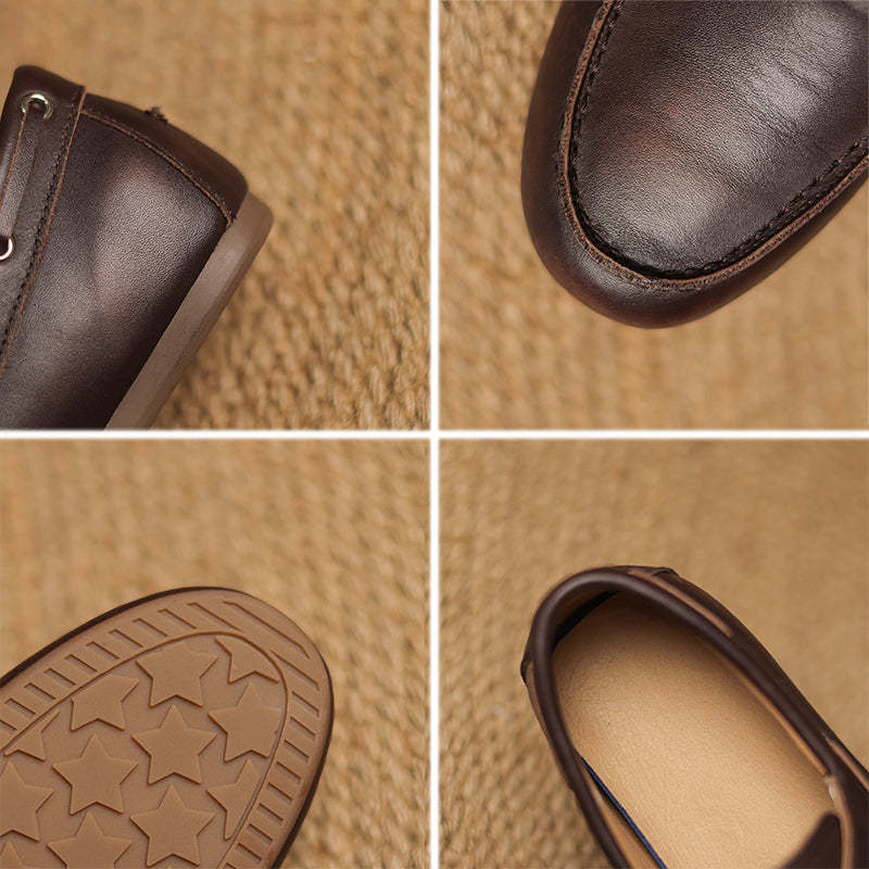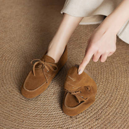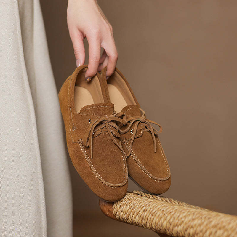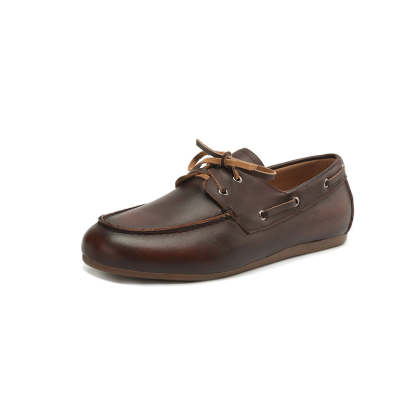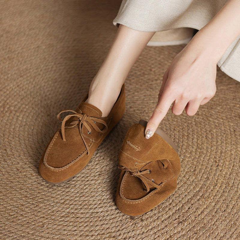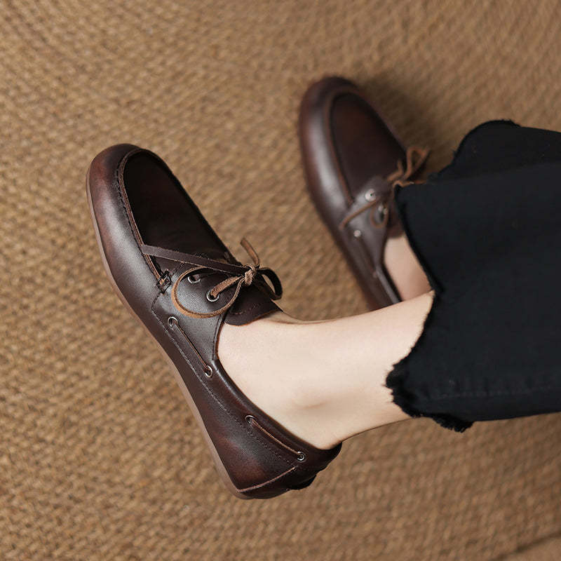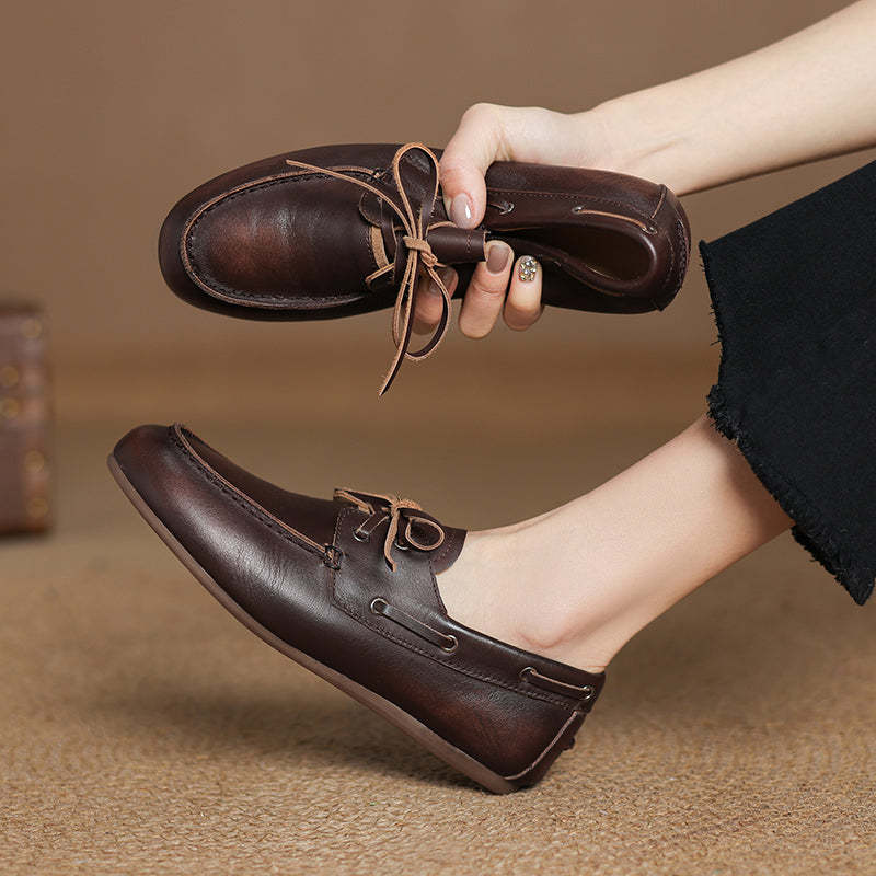 Vintage Leather Lace-Up Loafers Round Toe Flat Oxford Shoes in Light Brown/Deep Brown/Caramel/Apricot