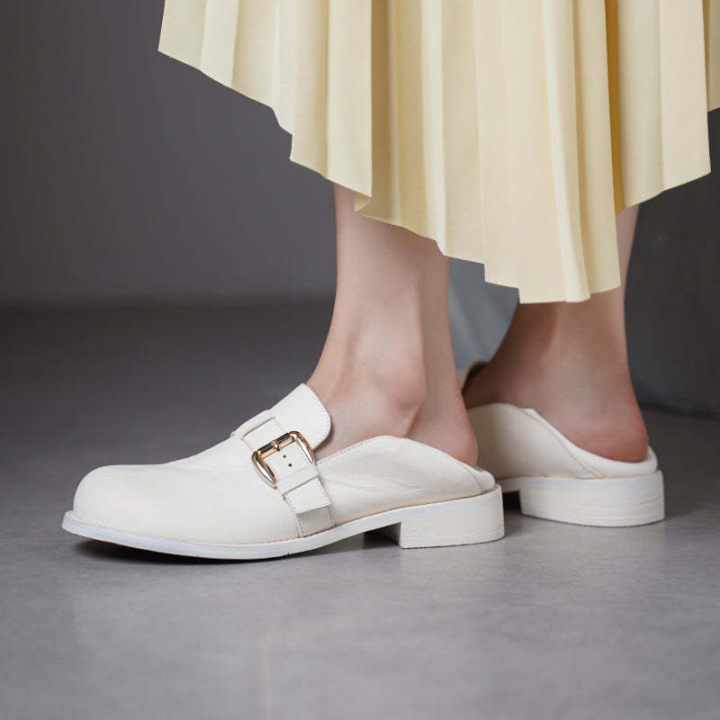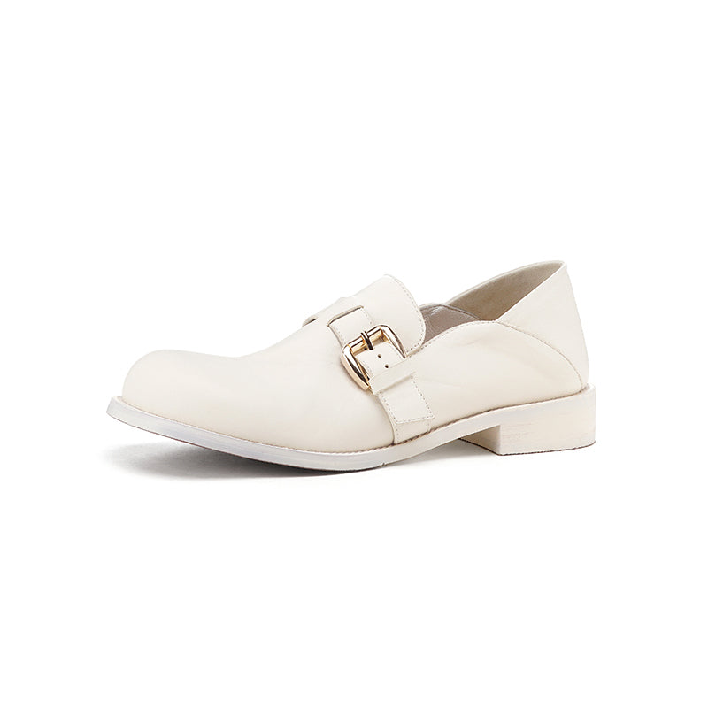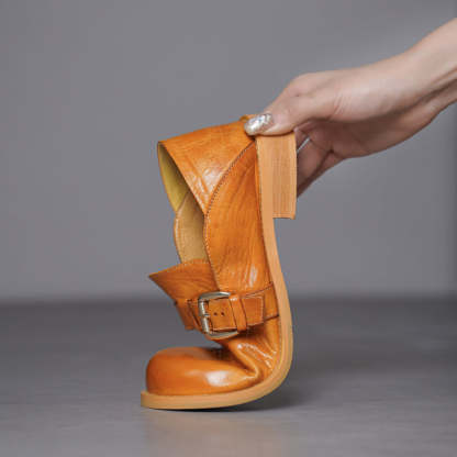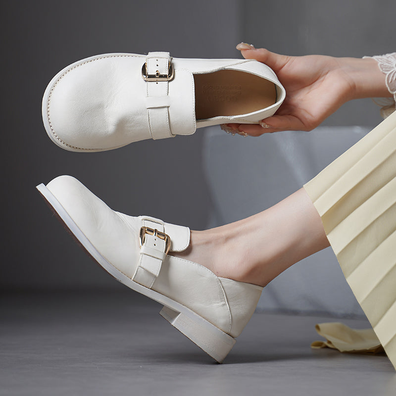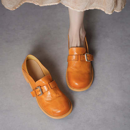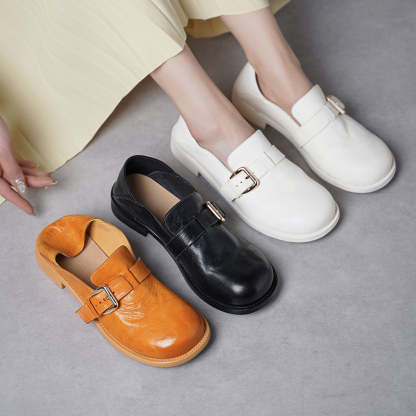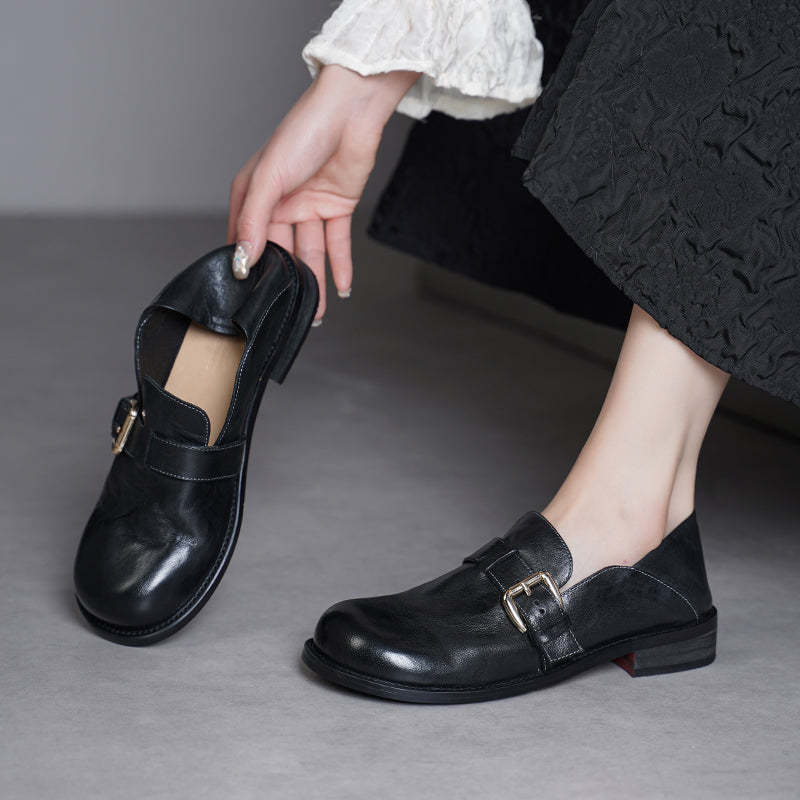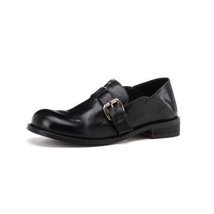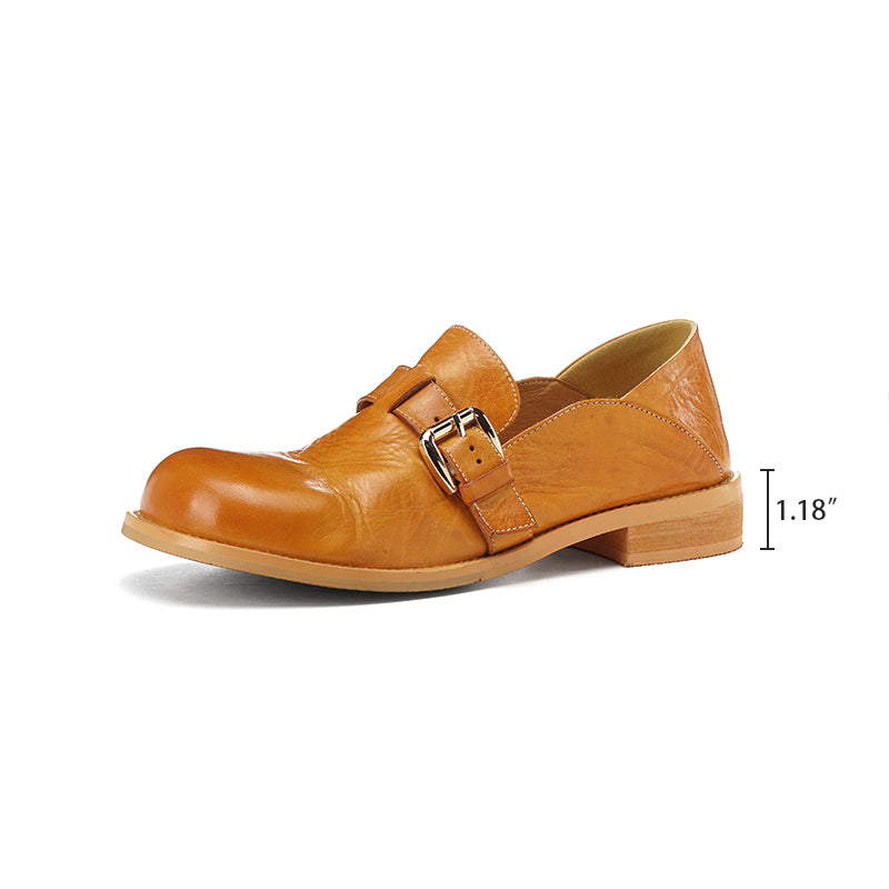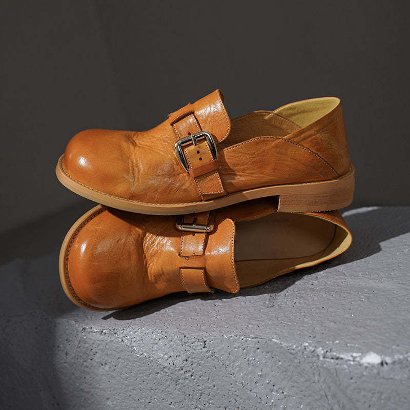 Vintage Monk Strap Loafers Horse Leather Round Toe Slip-On Casual Shoes in Black/White/Yellow