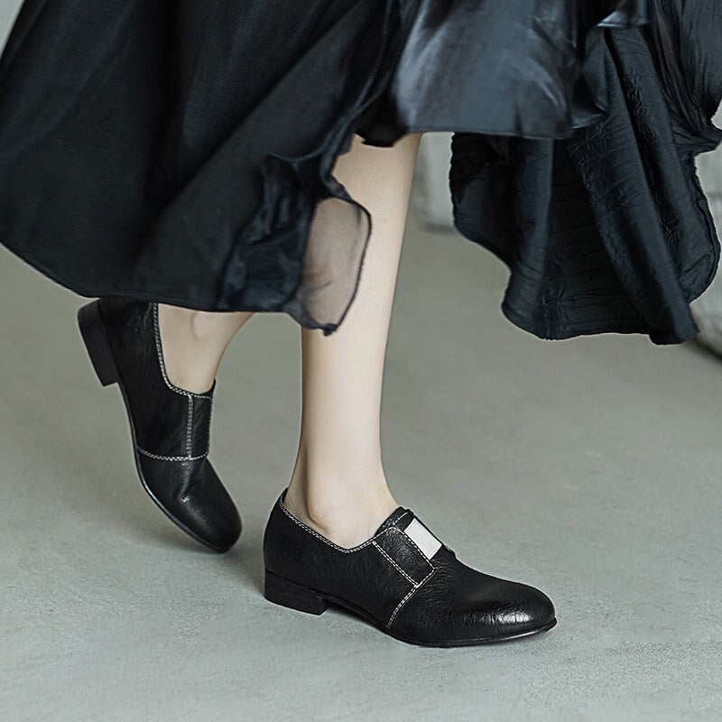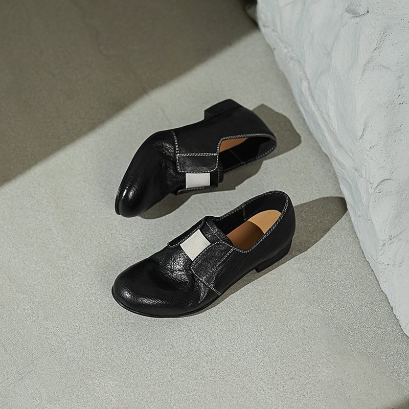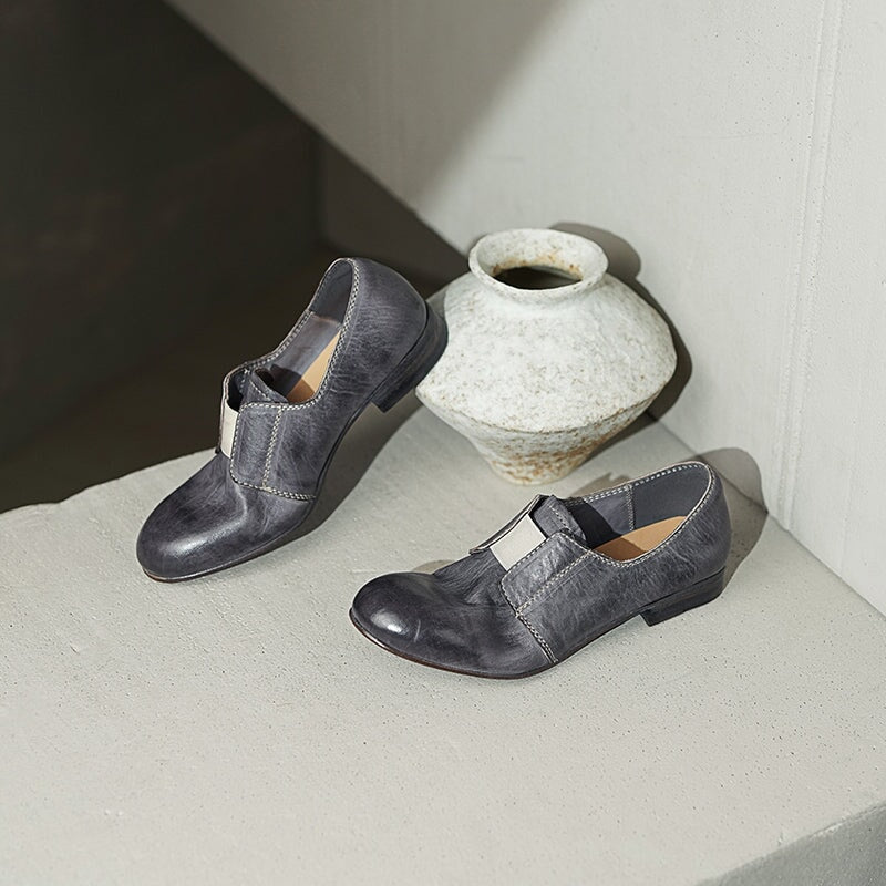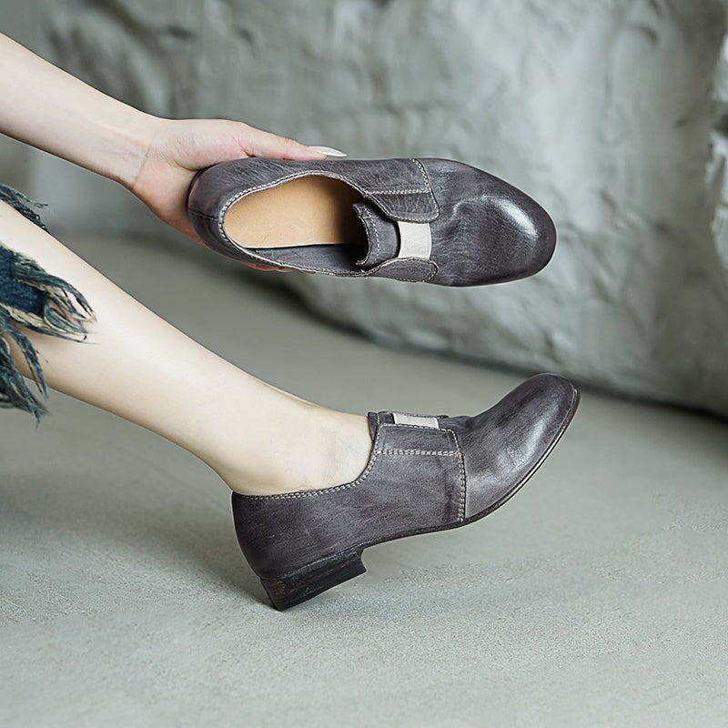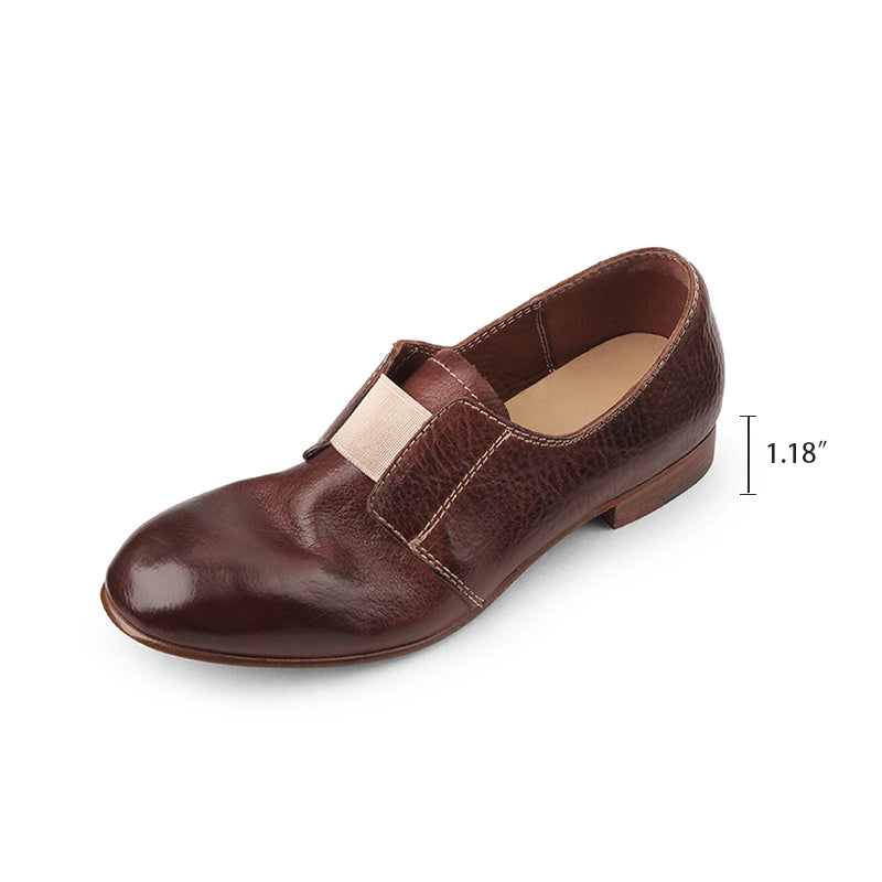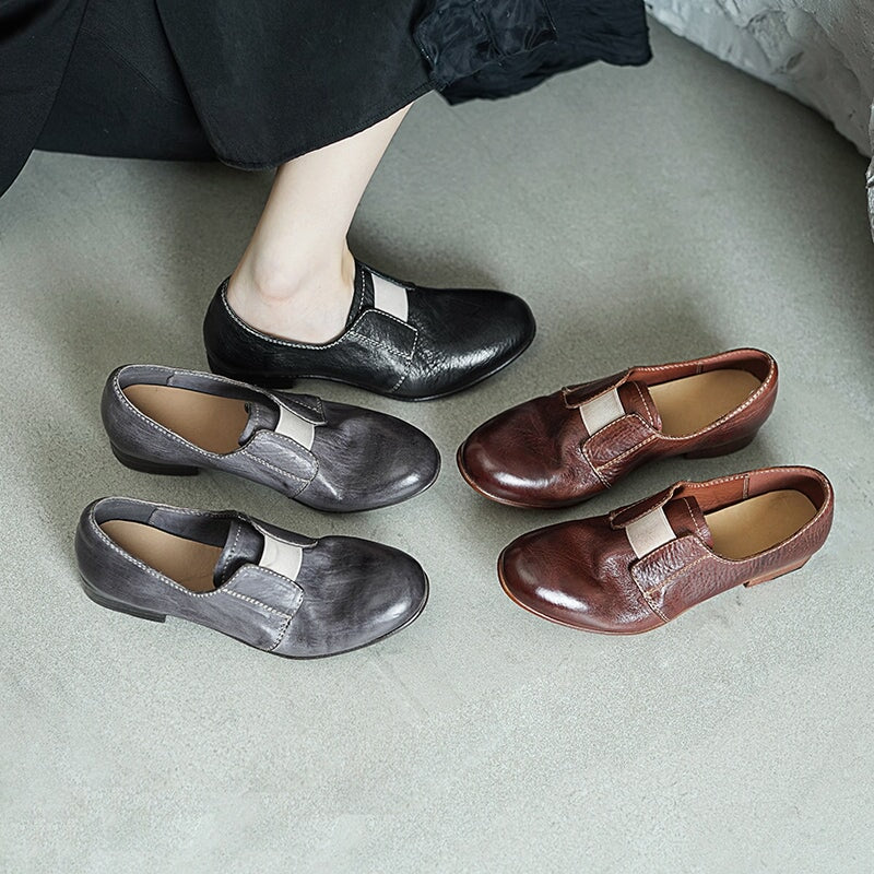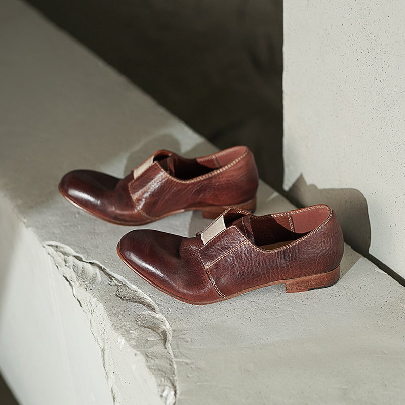 Vintage Washed Horsehide Leather Slip-On British Style Loafers in Red Brown/Grey/Black