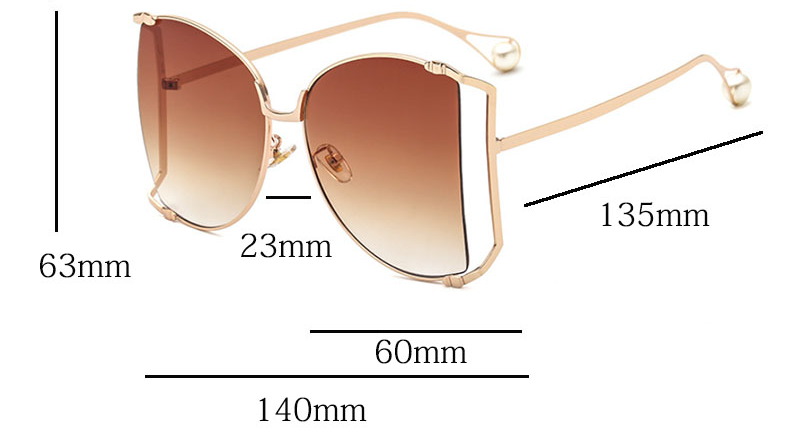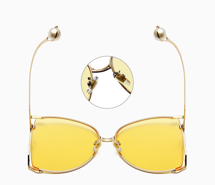 Pearl Decorated Alloy Frame UV400 Polycarbonate Gradient Lens Butterfly Sunglasses