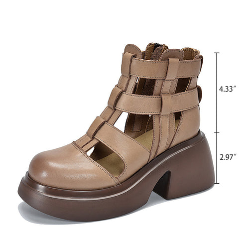 Woven Leather Platform Gladiator Sandals with Side Zipper in Beige/Black/Grey/Brown